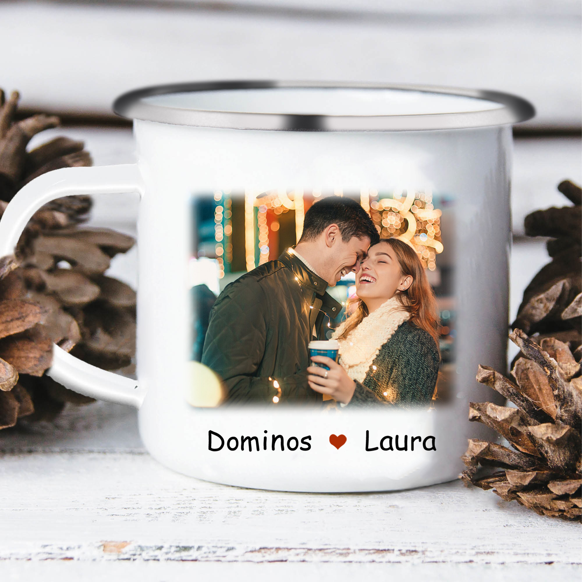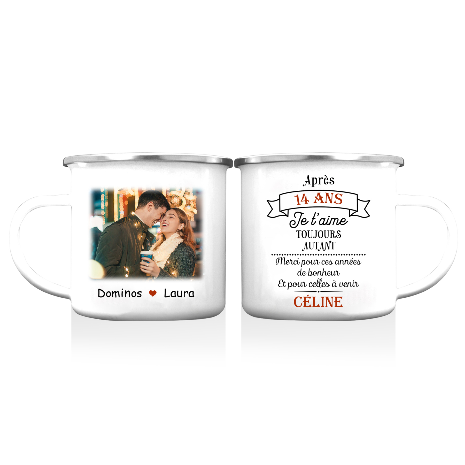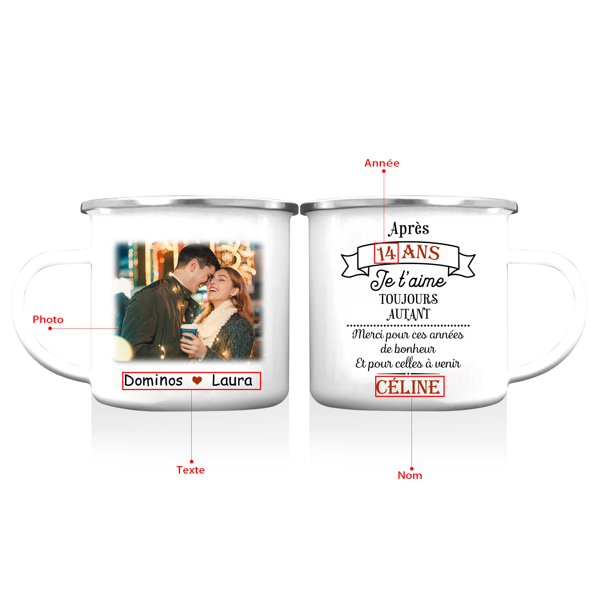 À Mon Amour - Tasse émaillée Prénom et Texte Personnalisés avec Photo et Année