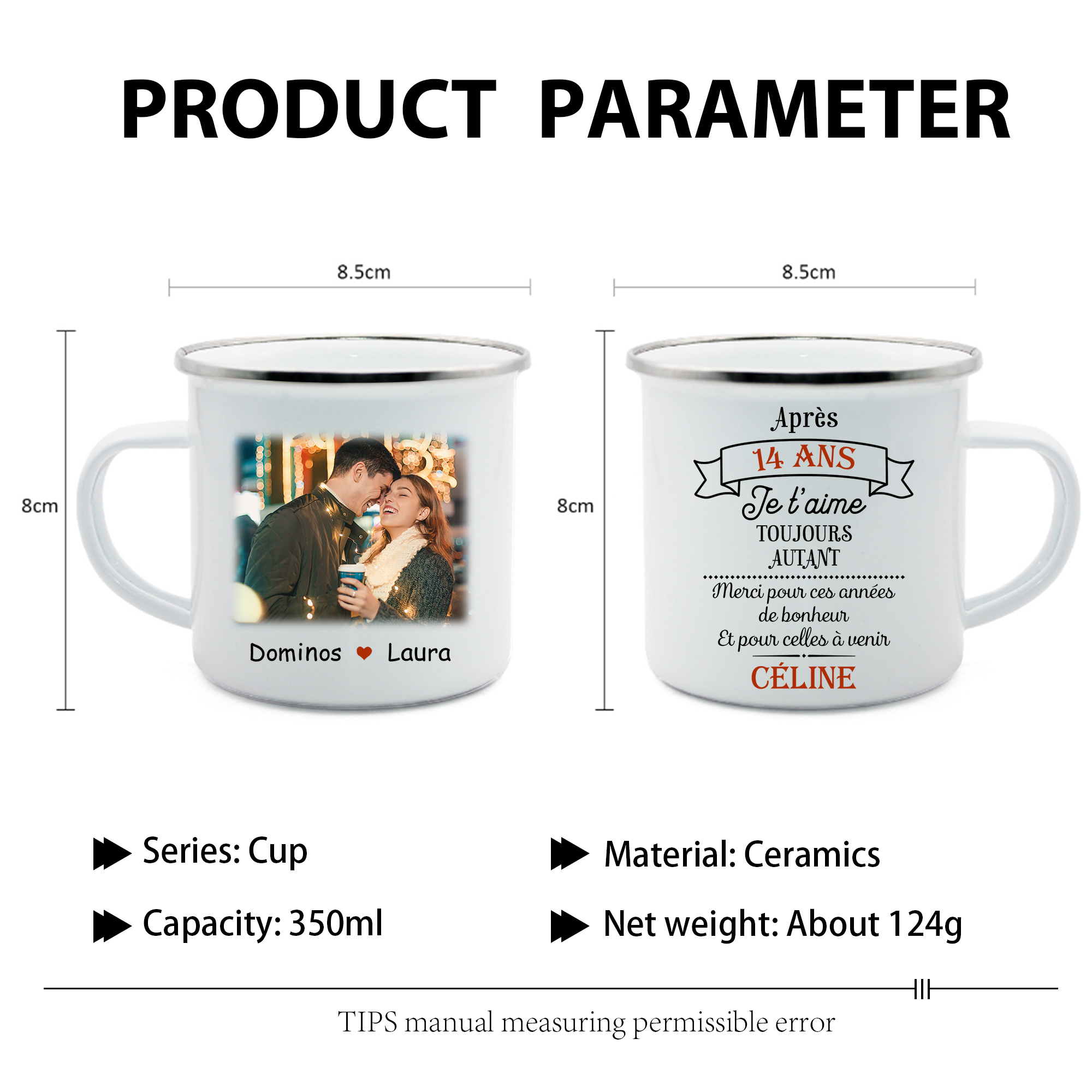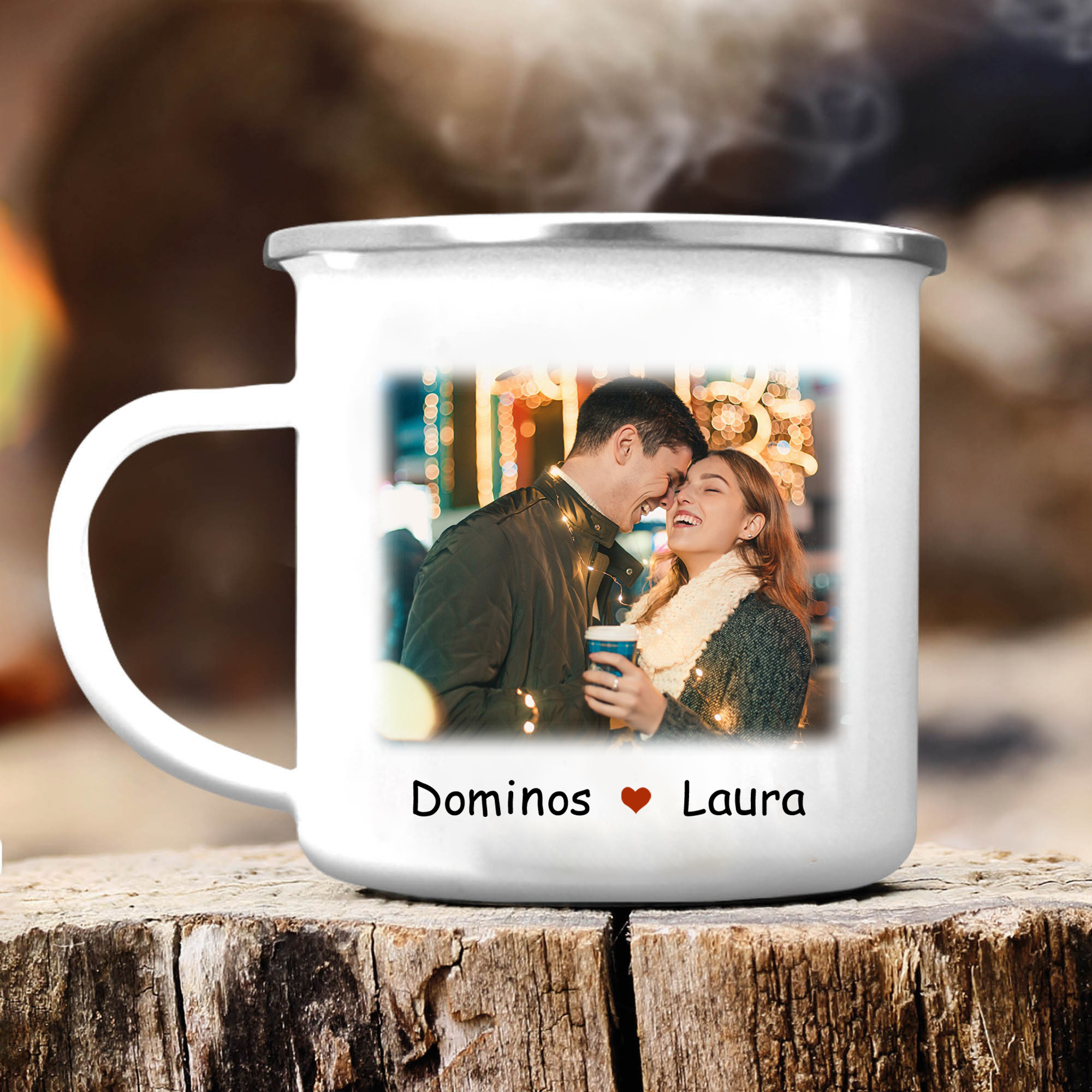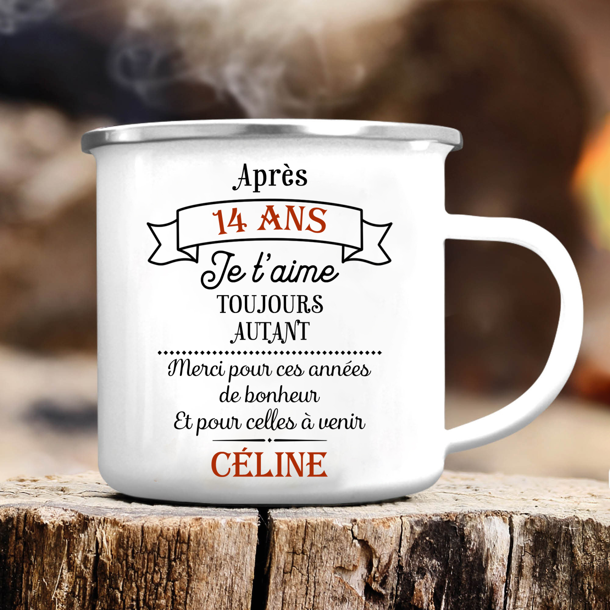 À Mon Amour - Tasse émaillée Prénom et Texte Personnalisés avec Photo et Année