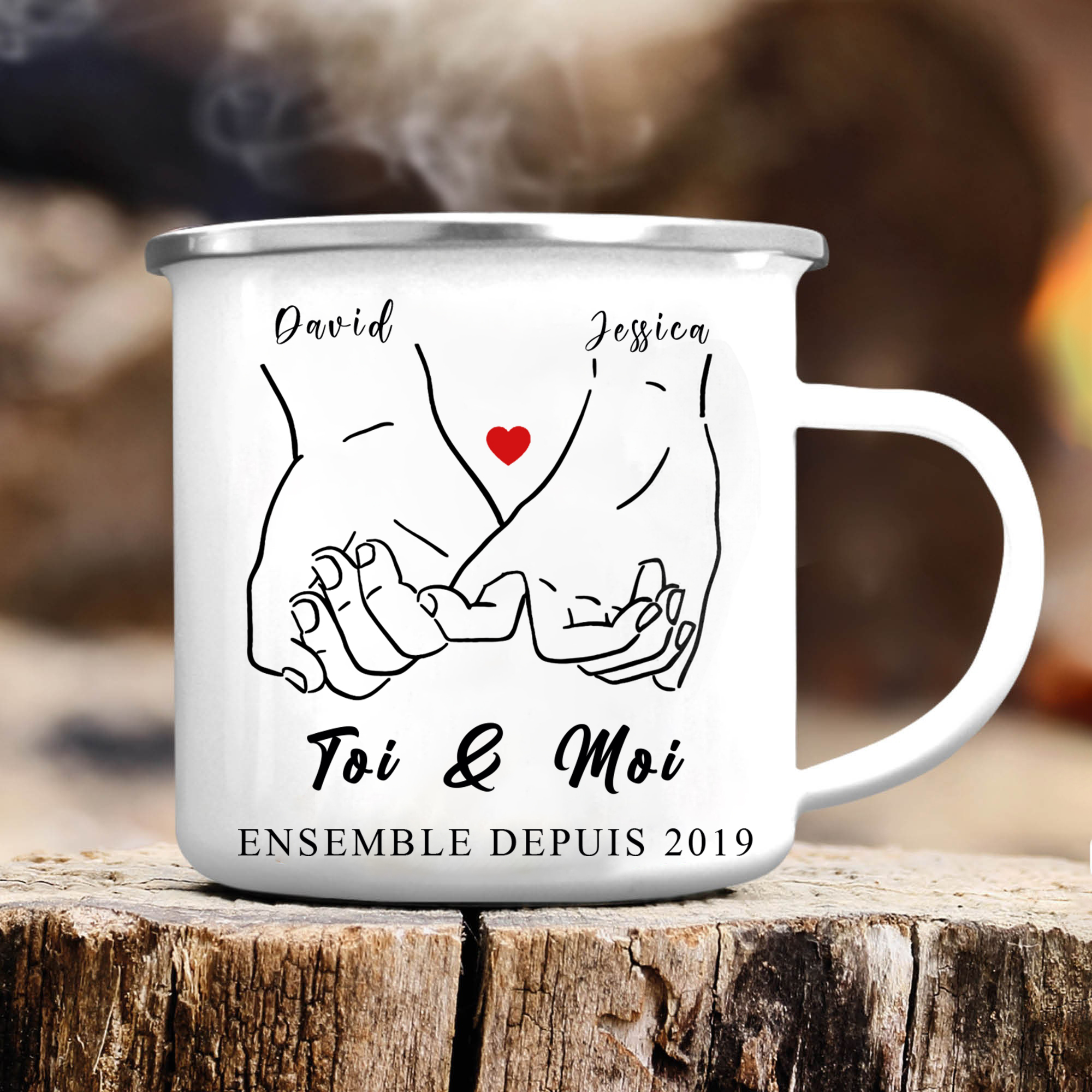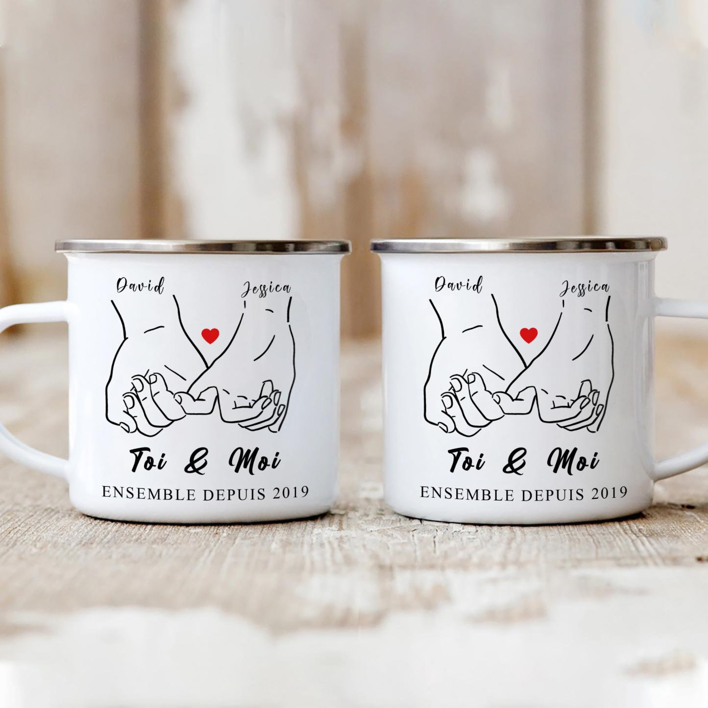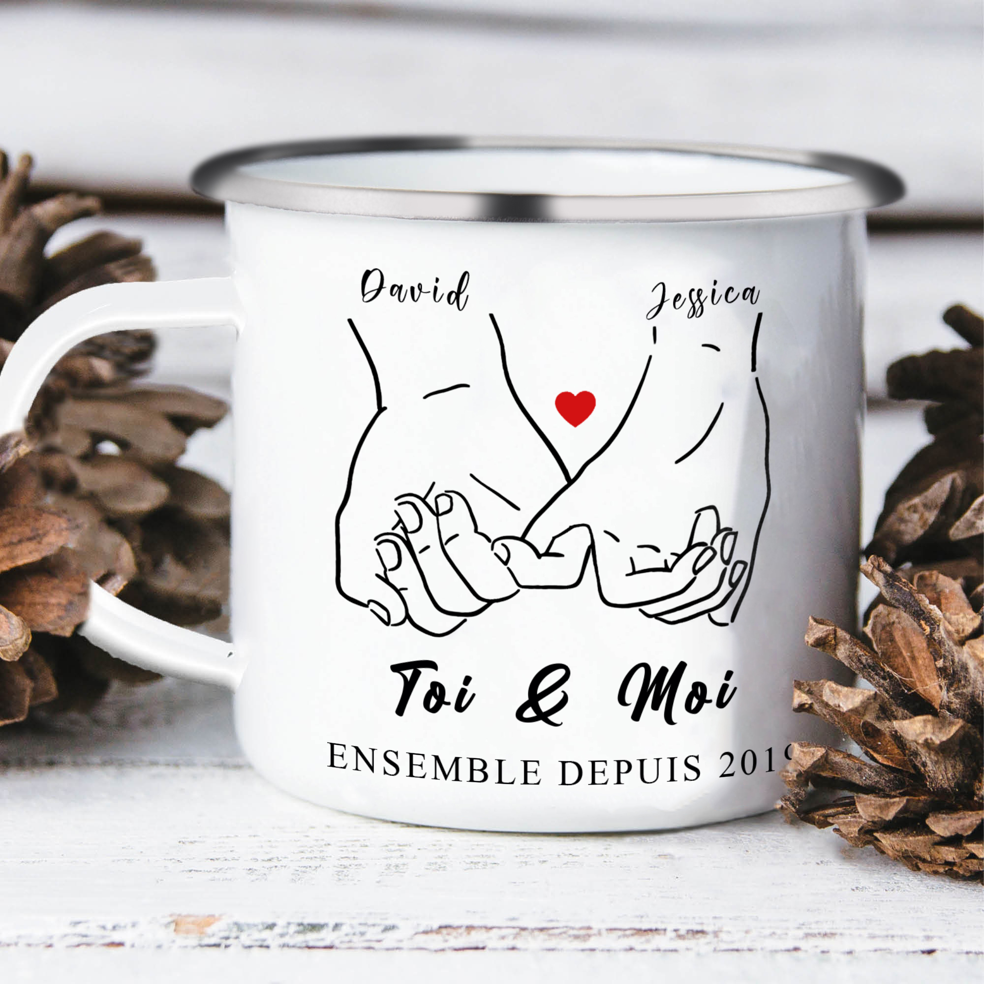 À Mon Amour - Tasse émaillée promesse de petit doigt 2 Prénoms Personnalisés avec Année