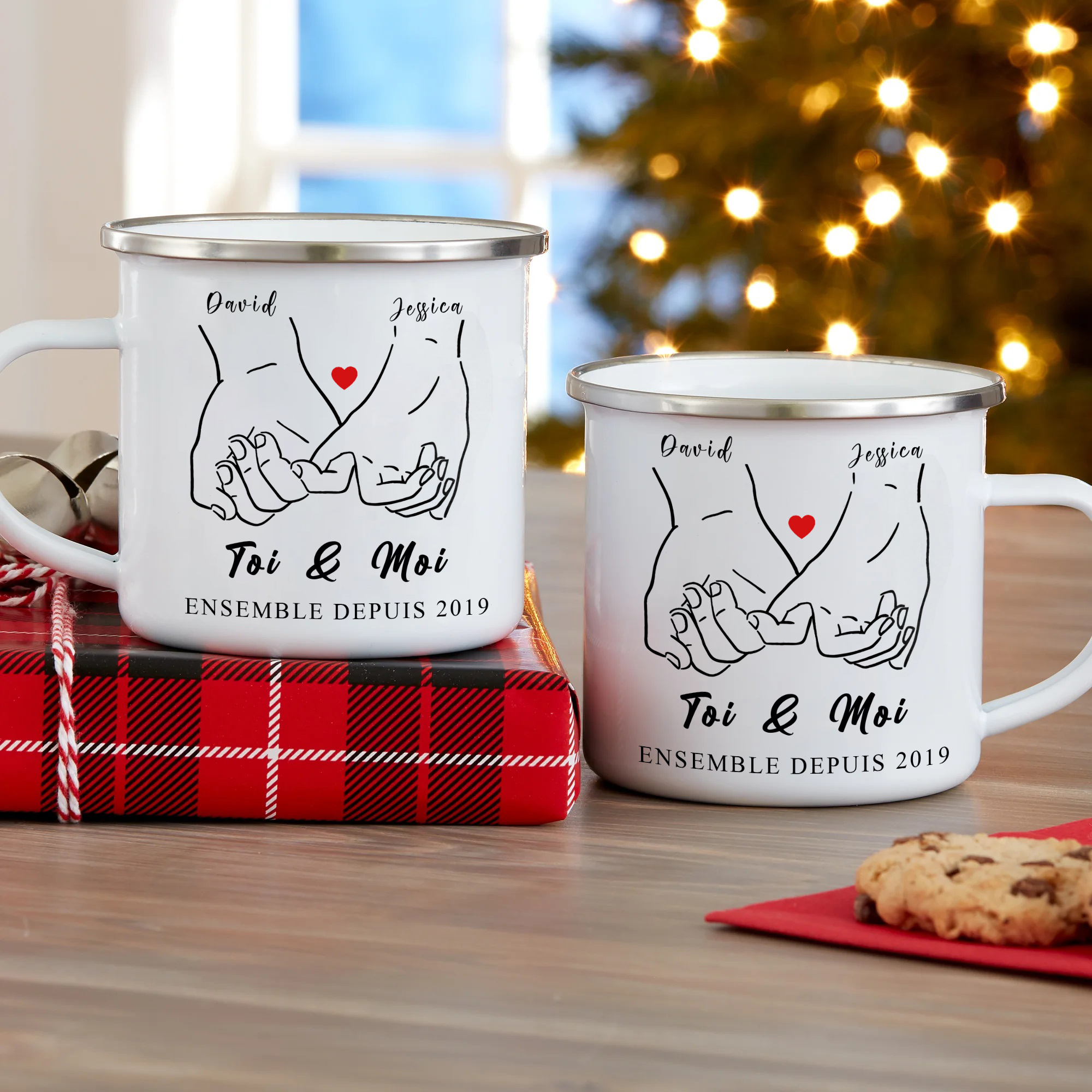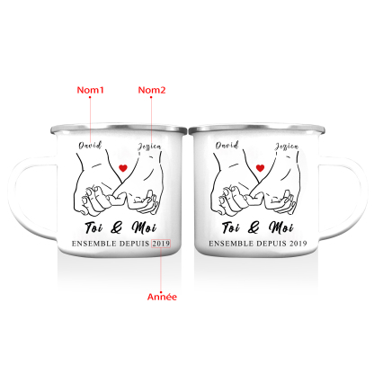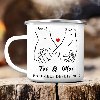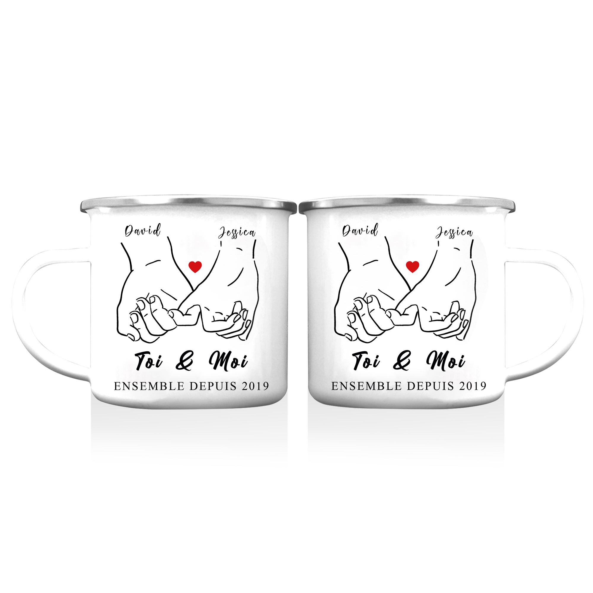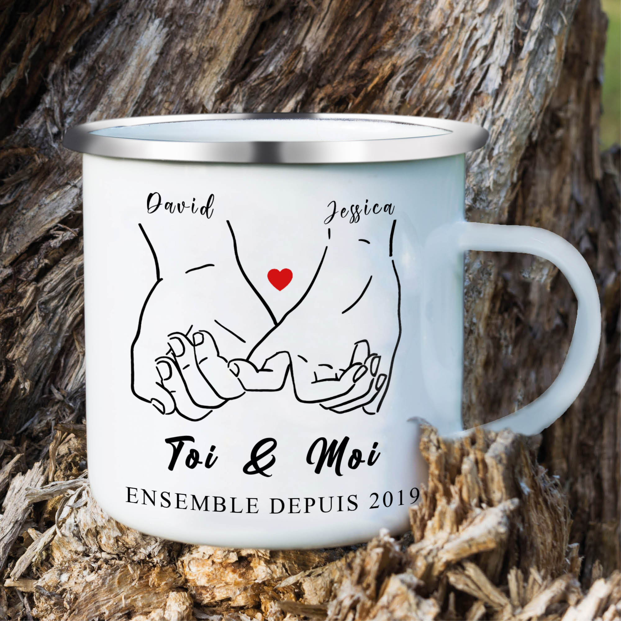 À Mon Amour - Tasse émaillée promesse de petit doigt 2 Prénoms Personnalisés avec Année