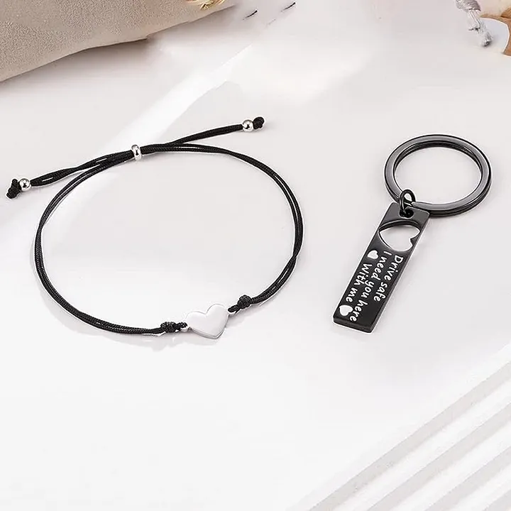 À Mon Fils - 2PCS Ensemble de Porte-clés et Bracelet Cœur 1 Texte Personnalisé