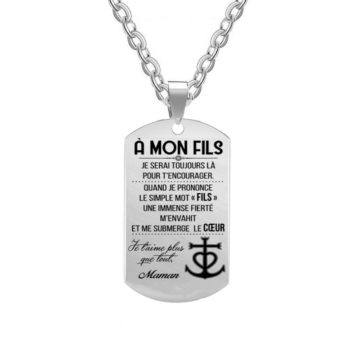 A mon fils - Collier Personnalisé texte Gravé au dos Collier Homme