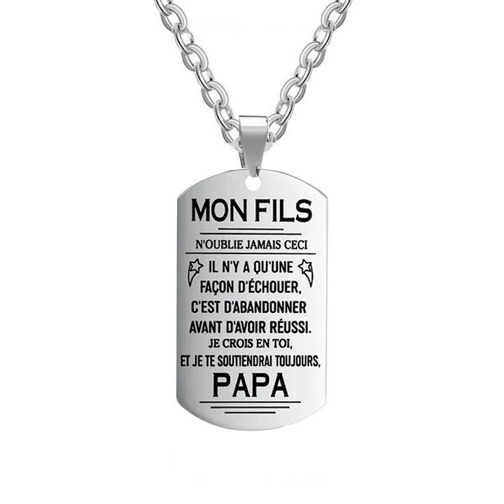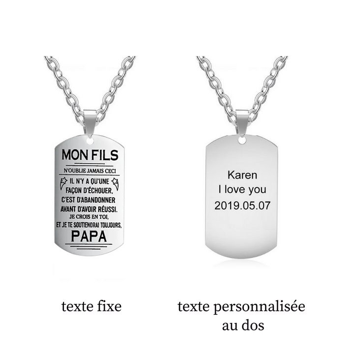 À mon Fils - Collier Personnalisé Texte Gravé au Dos Collier Homme