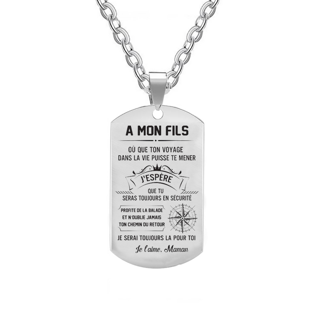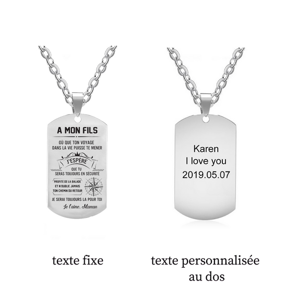A mon fils - Maman - Collier Personnalisé texte Gravé au dos Collier Homme