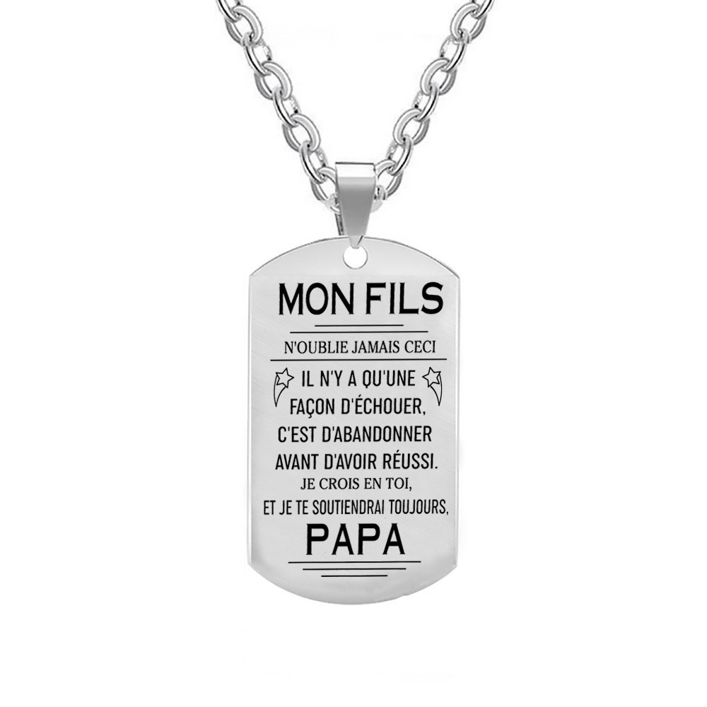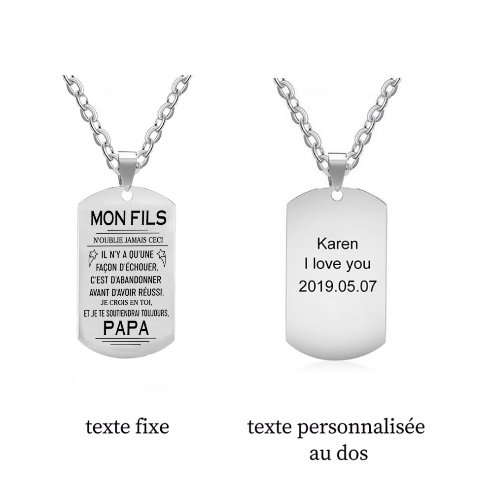 A mon fils - Papa - Collier Personnalisé texte Gravé au dos Collier Homme