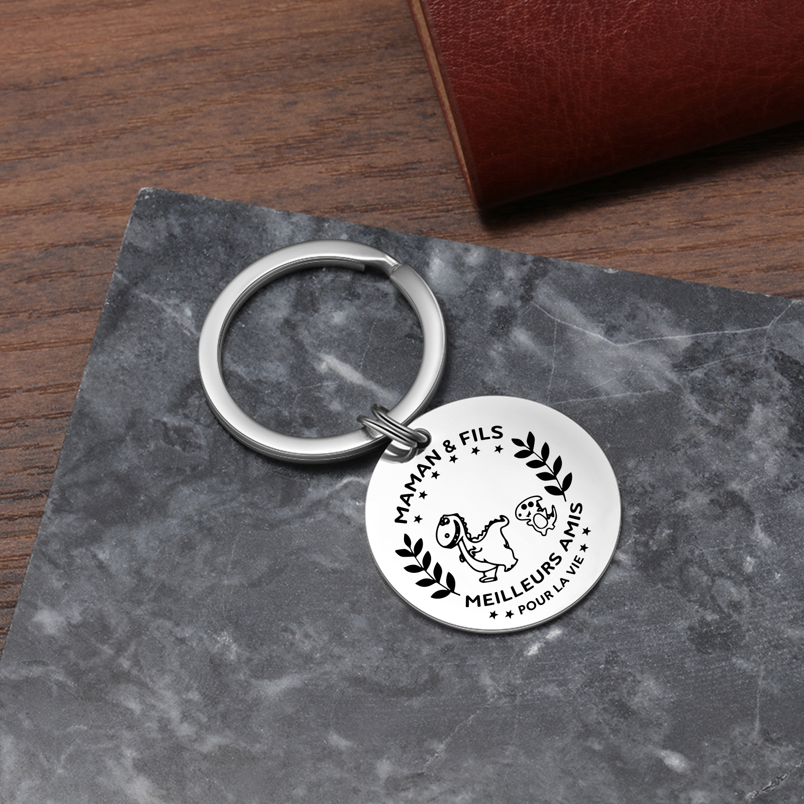 À mon Fils - Porte-Clés Dinosaure mère et fils avec Texte Personnalisé