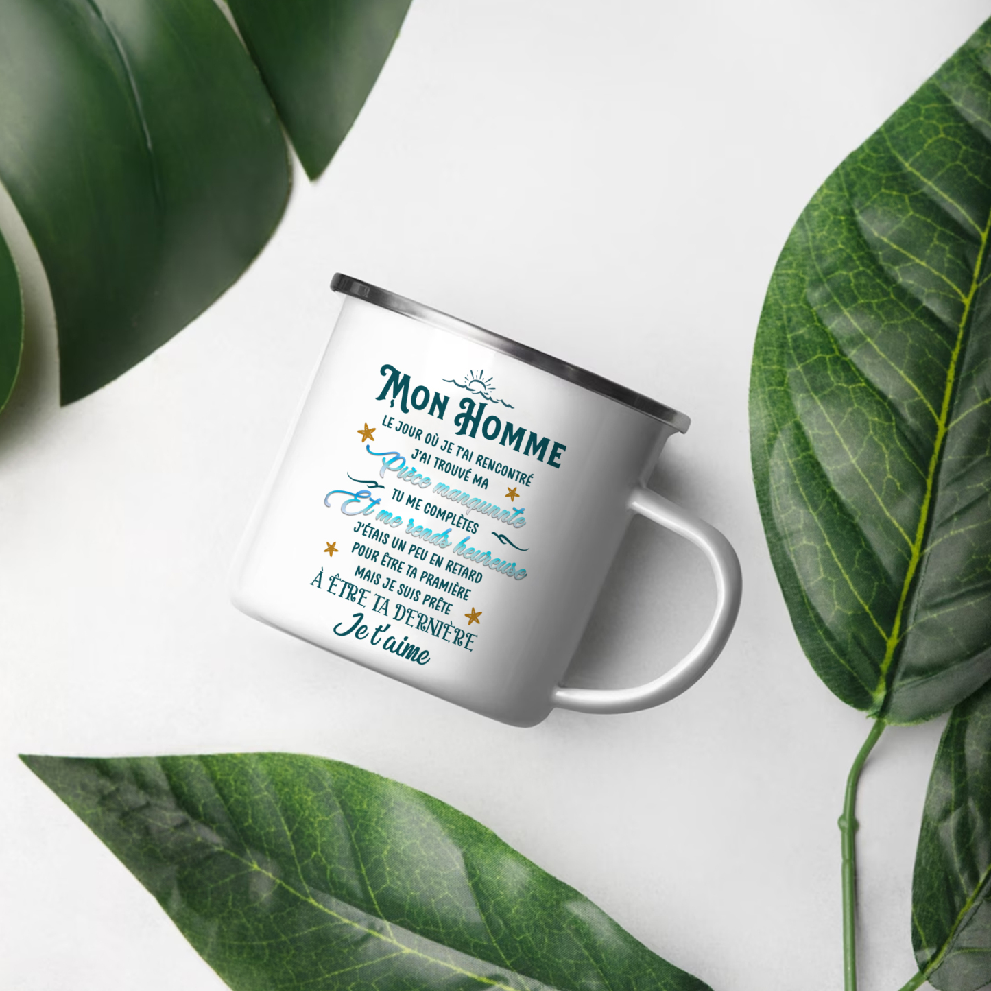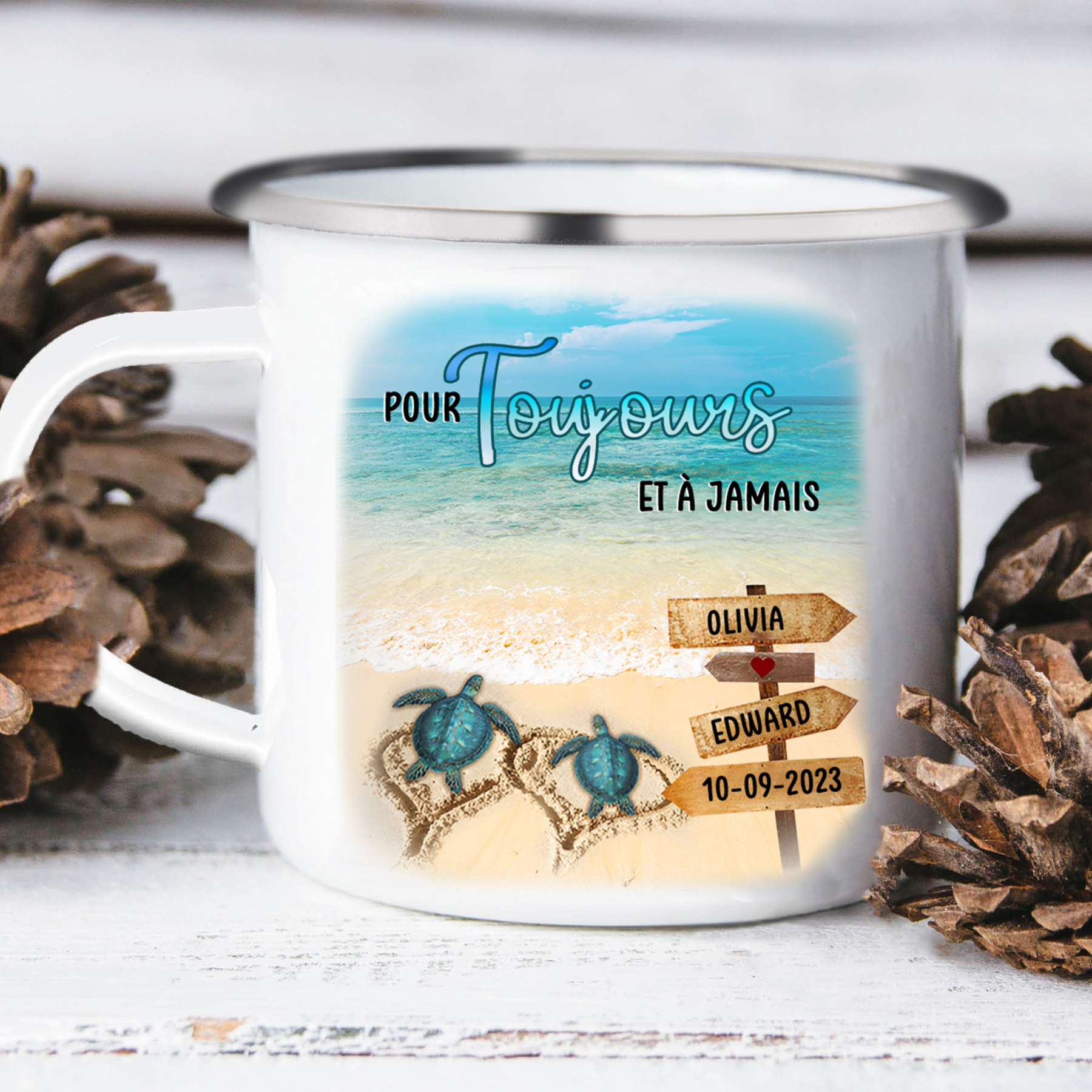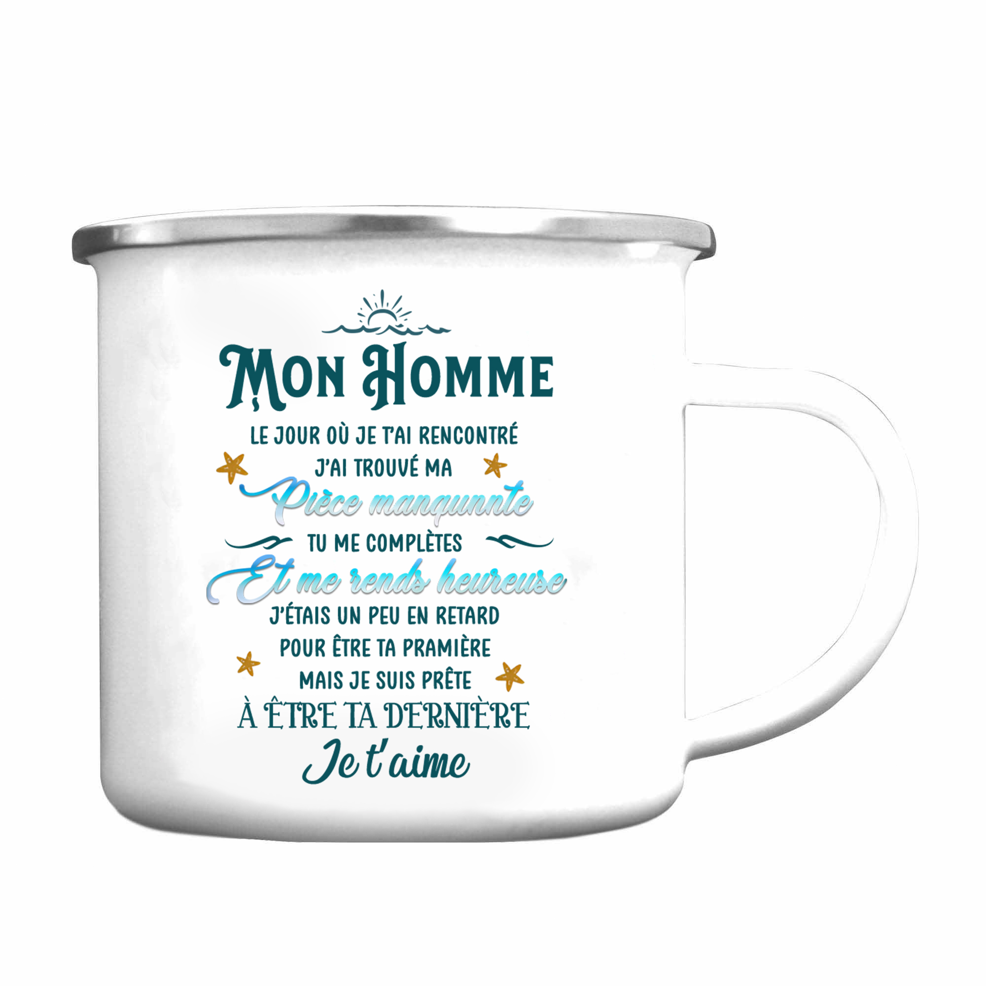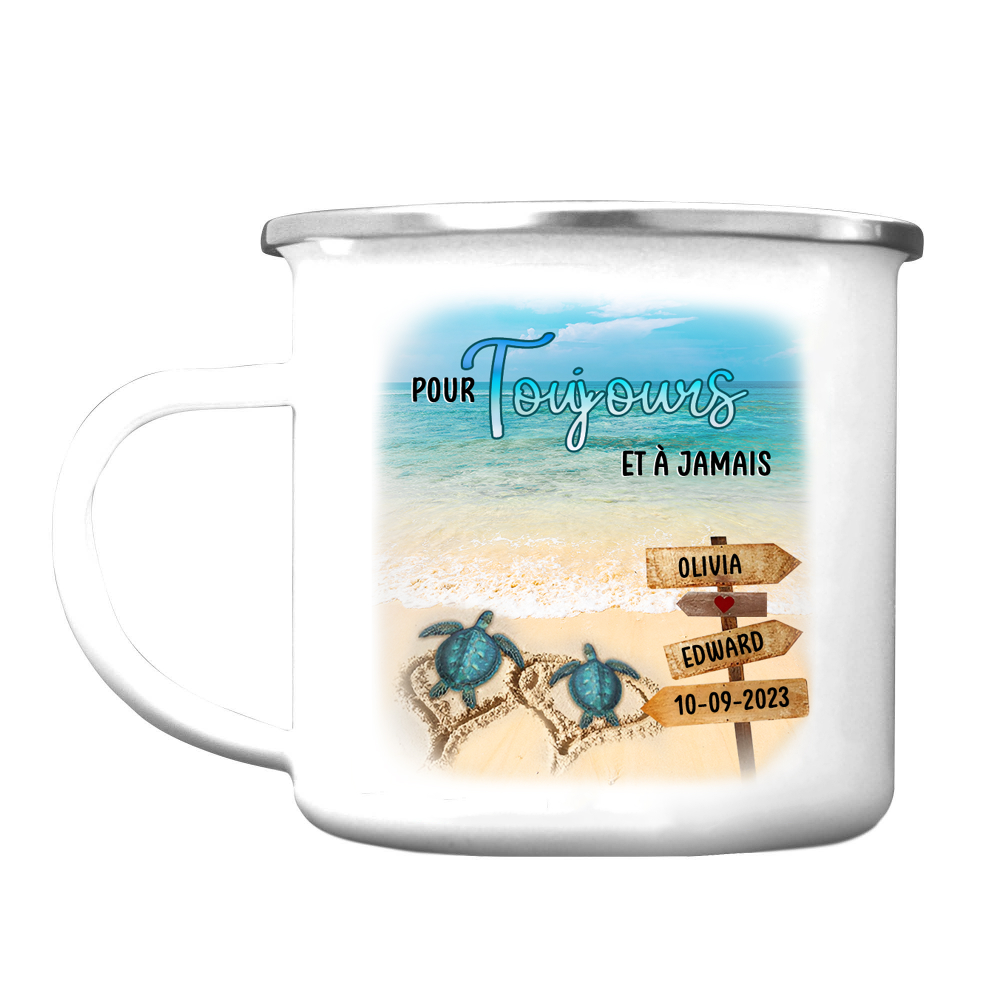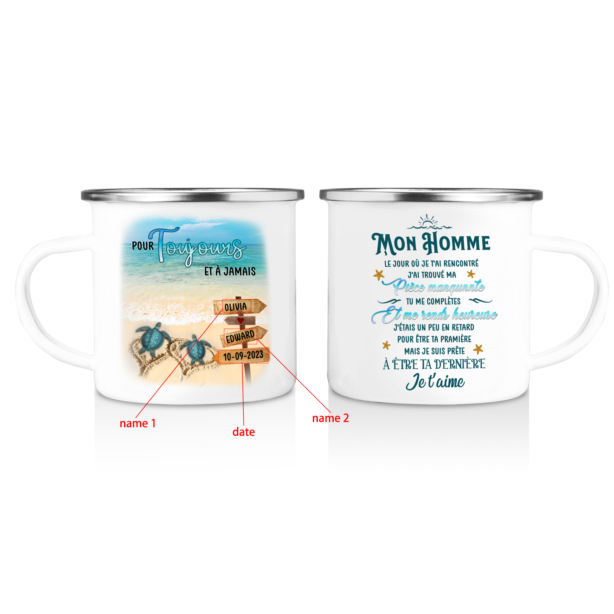 À Mon Homme - Tasse émaillée 2 Prénoms Personnalisés avec Date