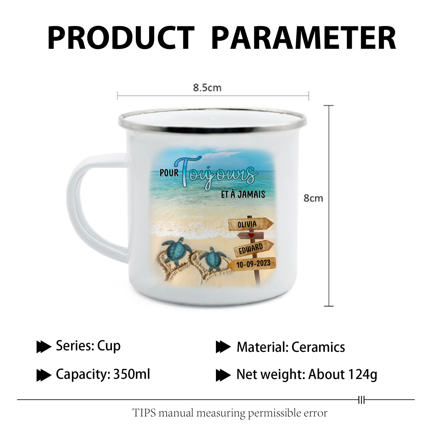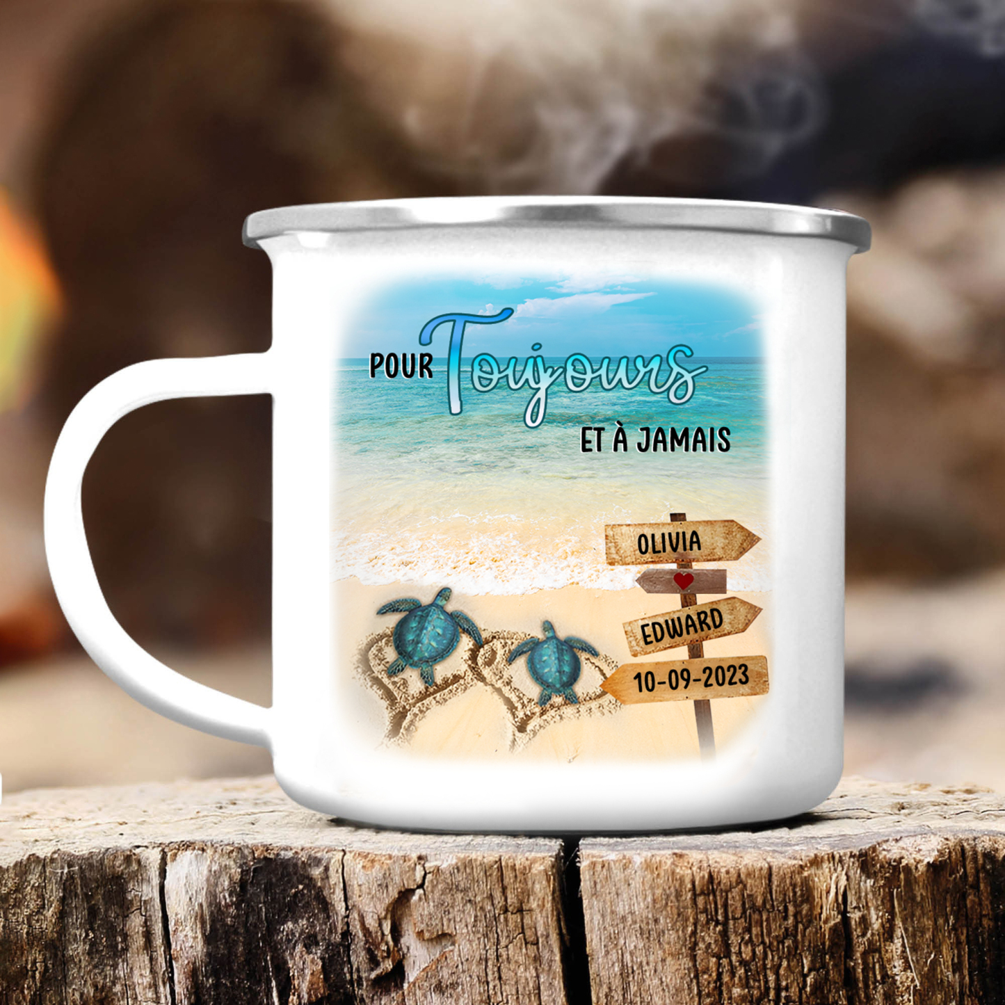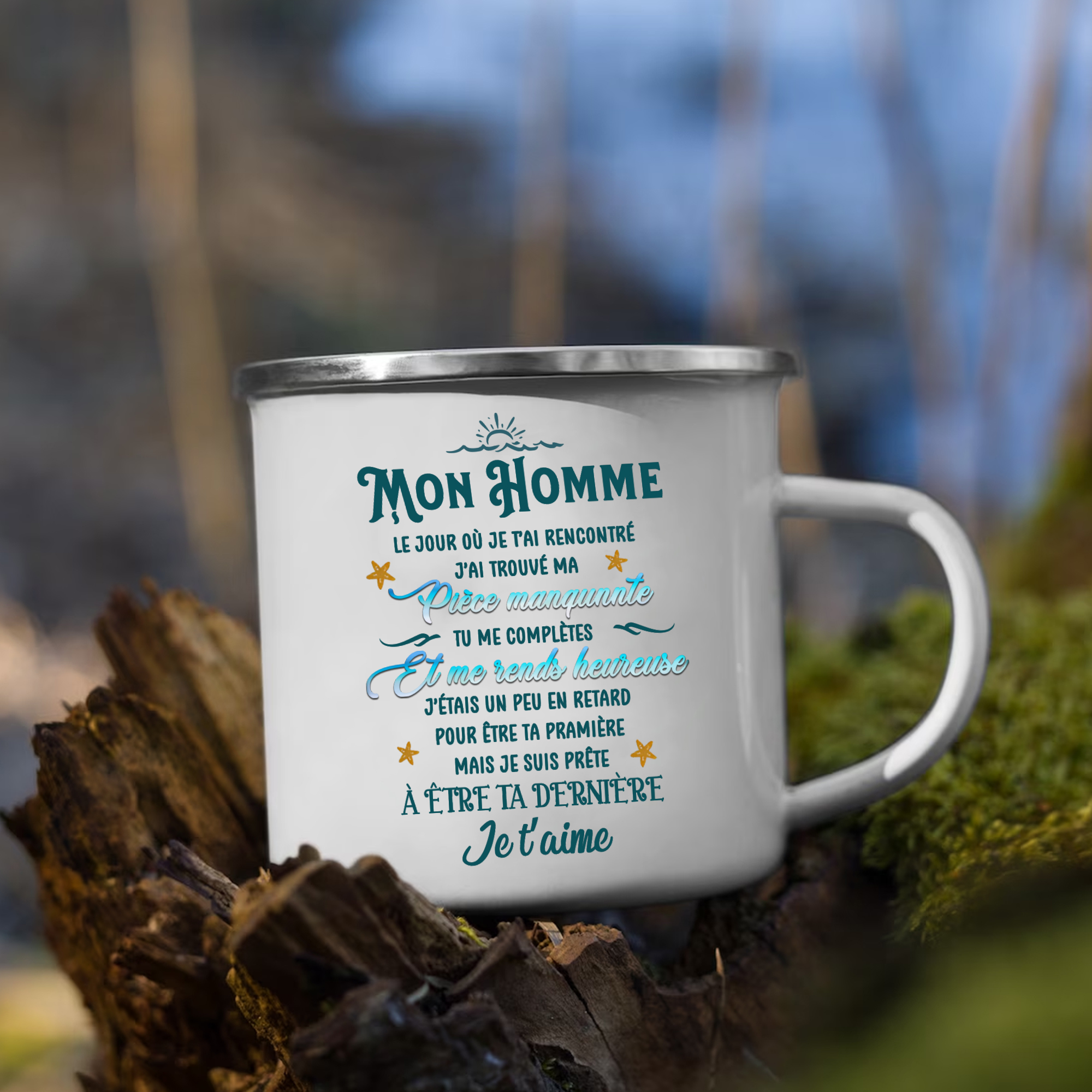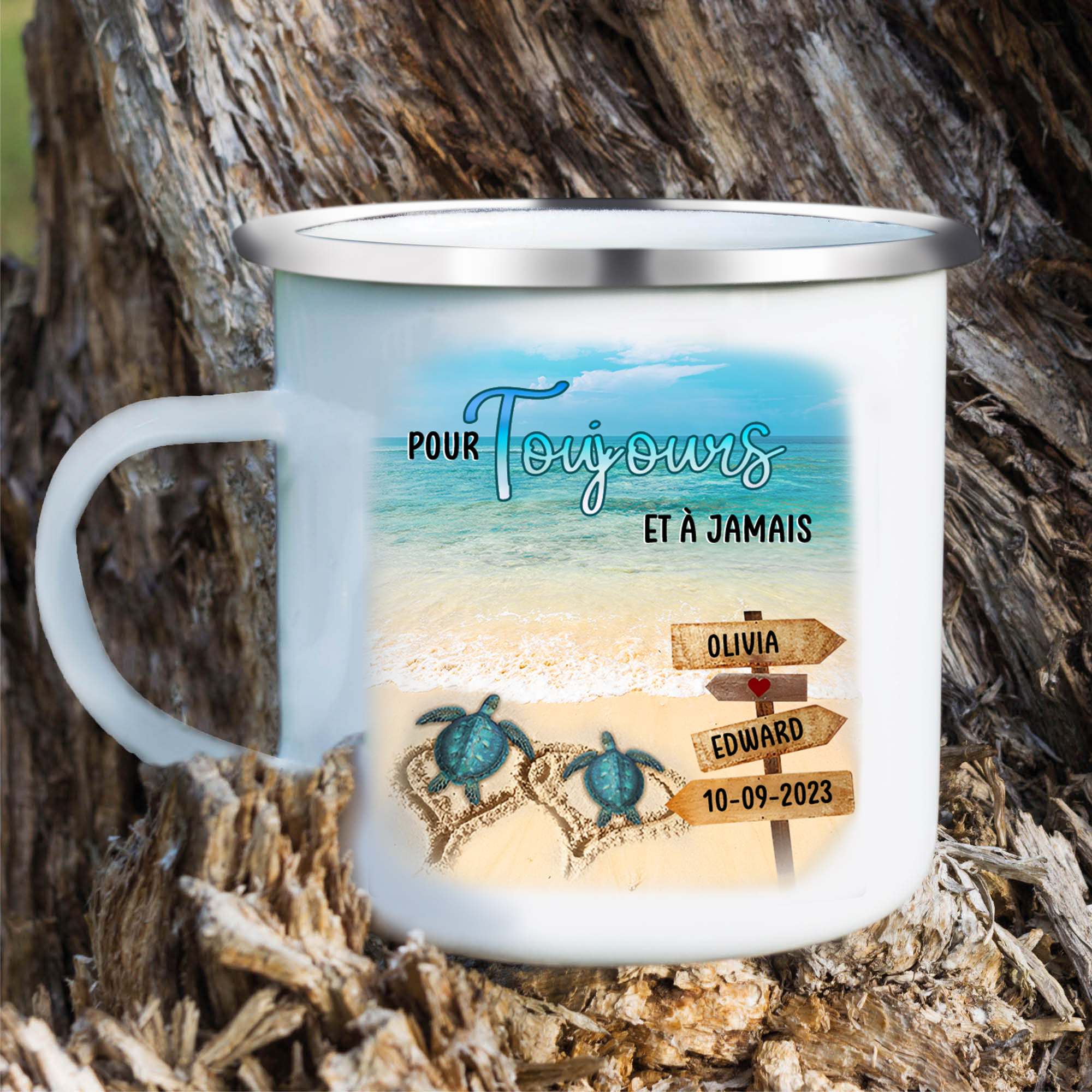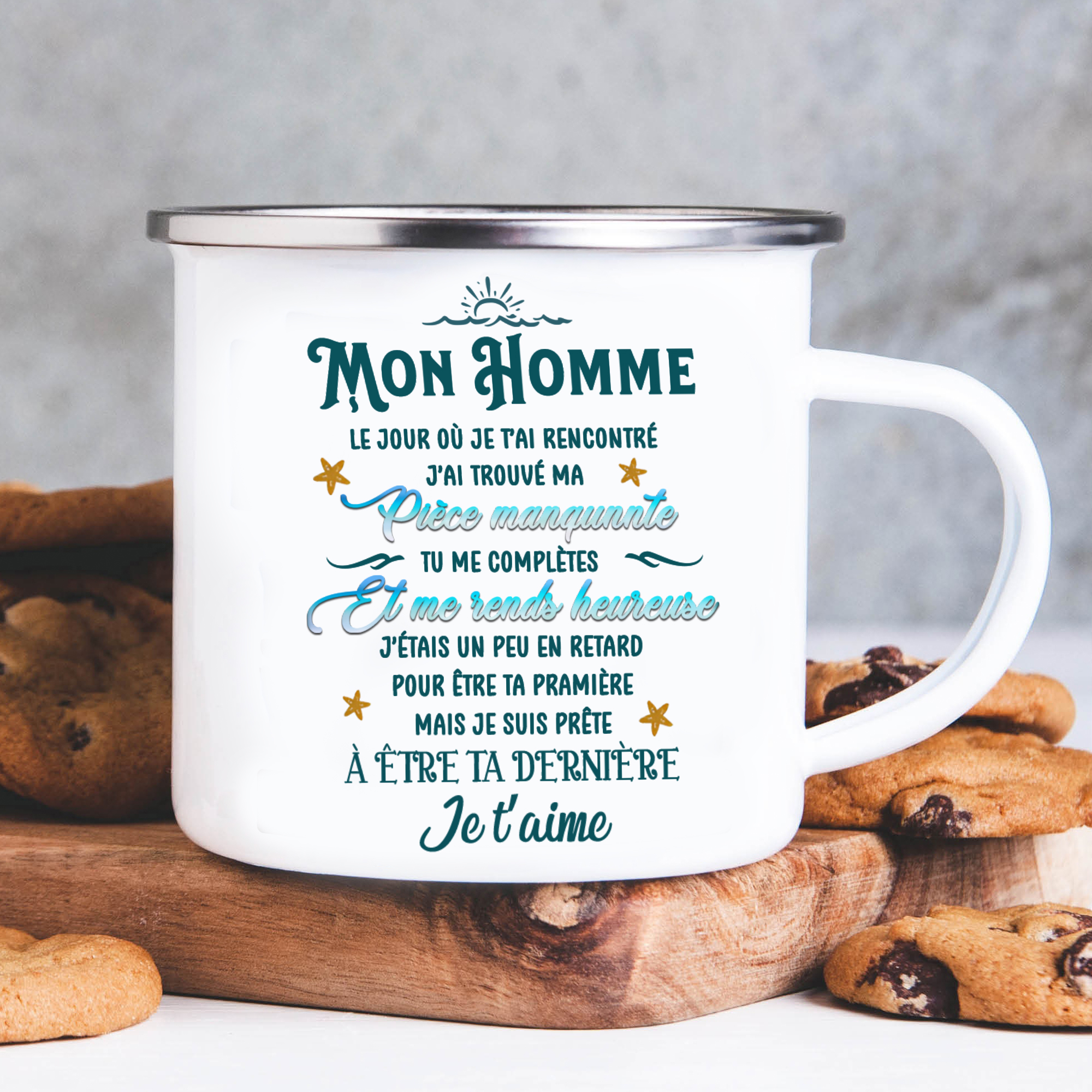 À Mon Homme - Tasse émaillée 2 Prénoms Personnalisés avec Date