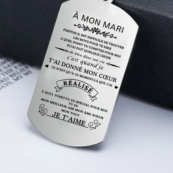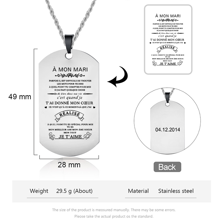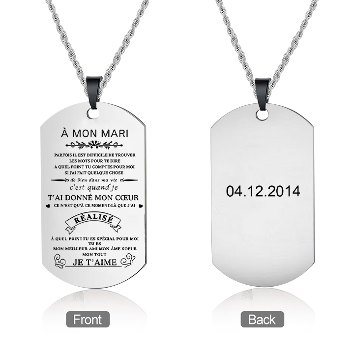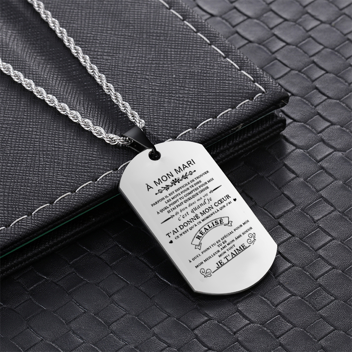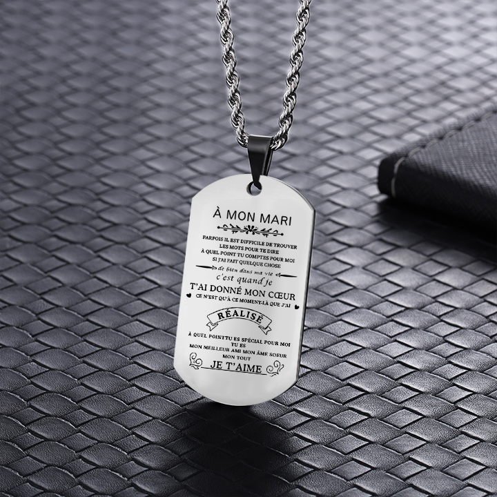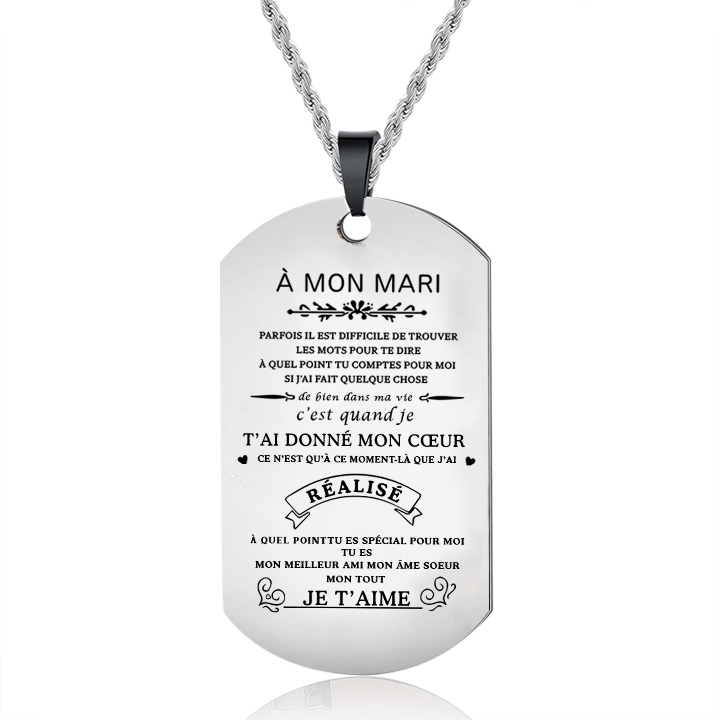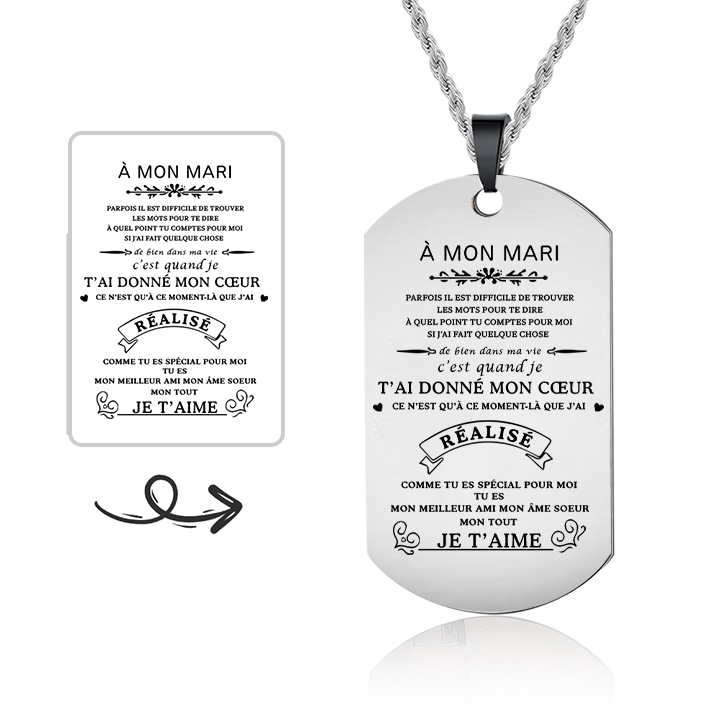 À mon Mari - Collier Personnalisé Texte Gravé au Dos Collier Homme
