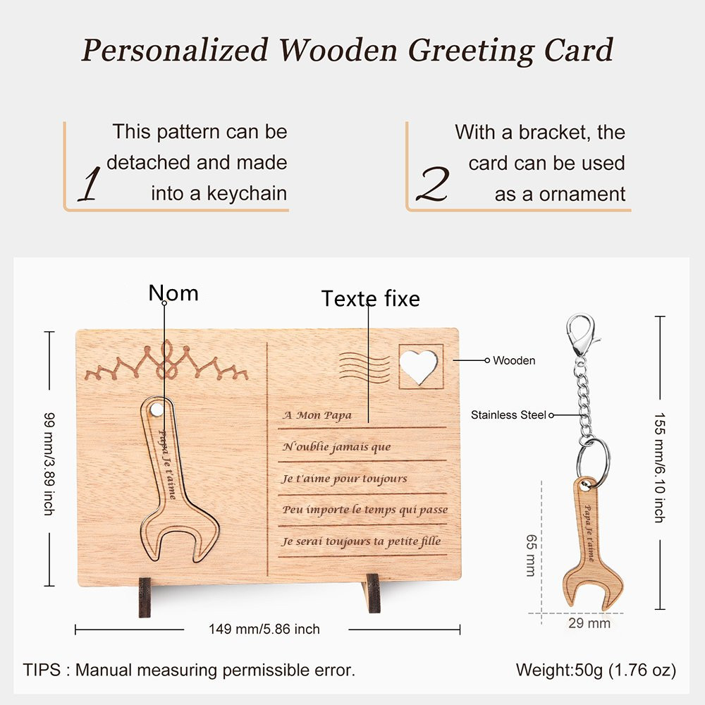 A mon papa - Carte en bois clés et Porte-clés Prénoms Personnalisé