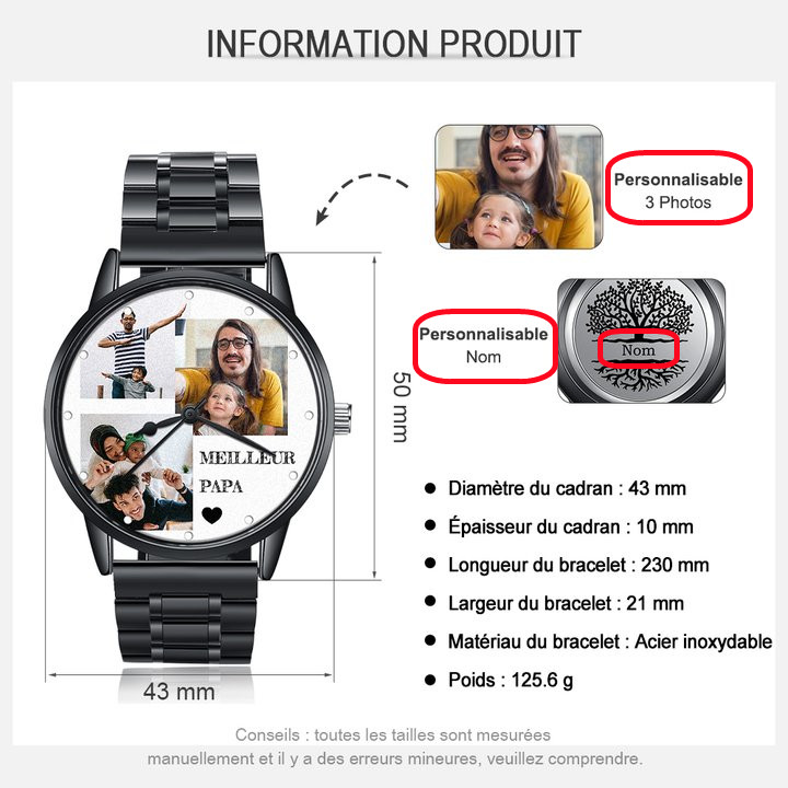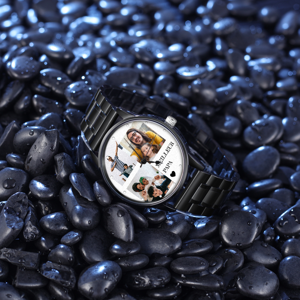 À mon Papa - Montre Personnalisée 3 Photo avec Gravure du prénom en acier inoxydable