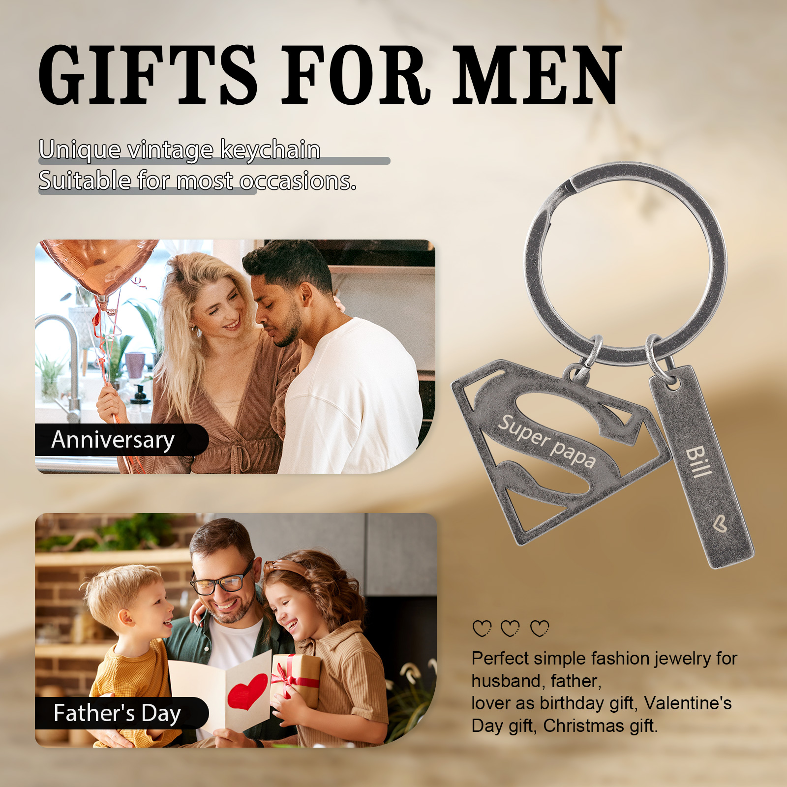 À mon Papa - Porte-Clés 1 Prénom Personnalisé avec Texte