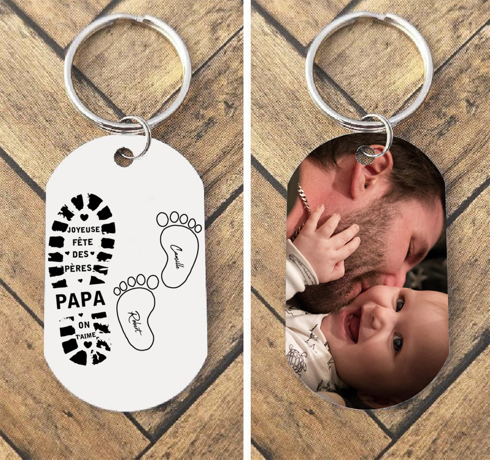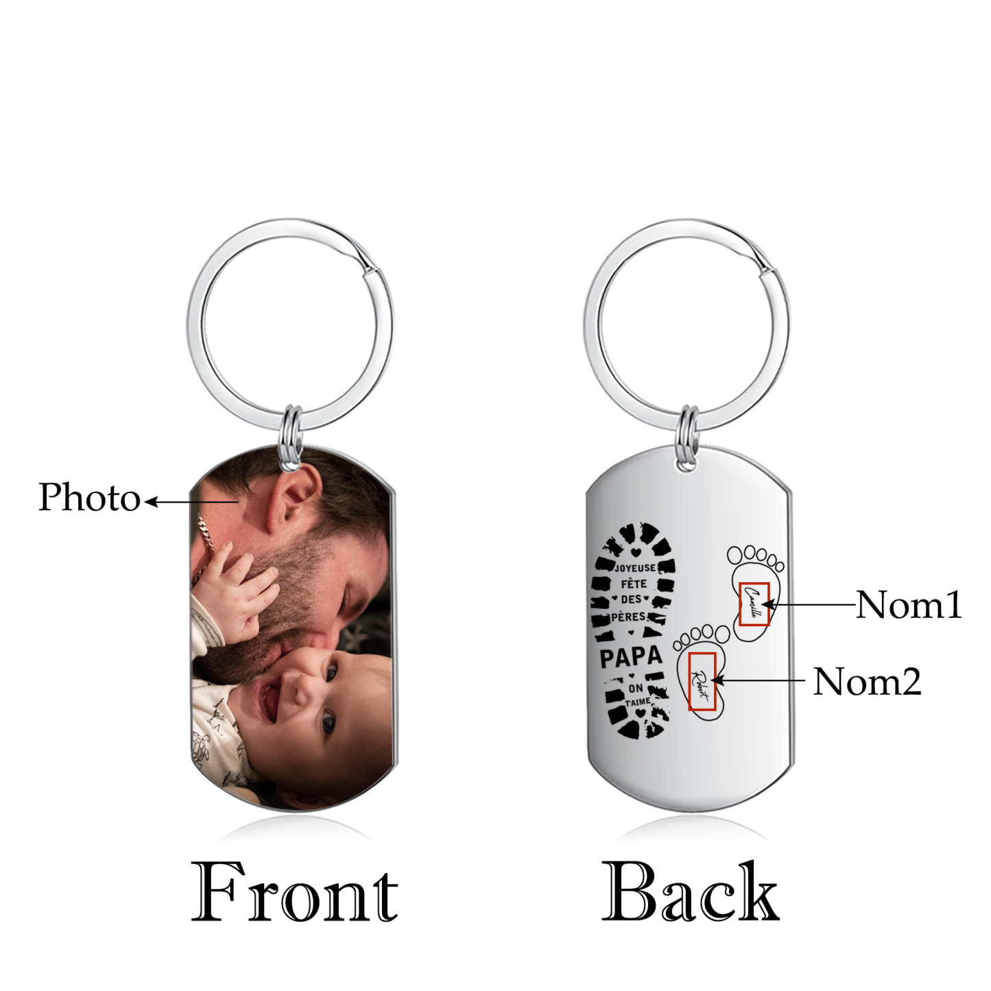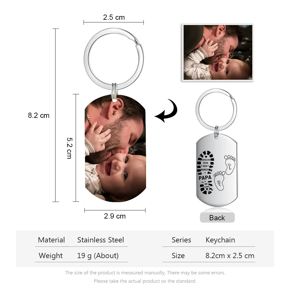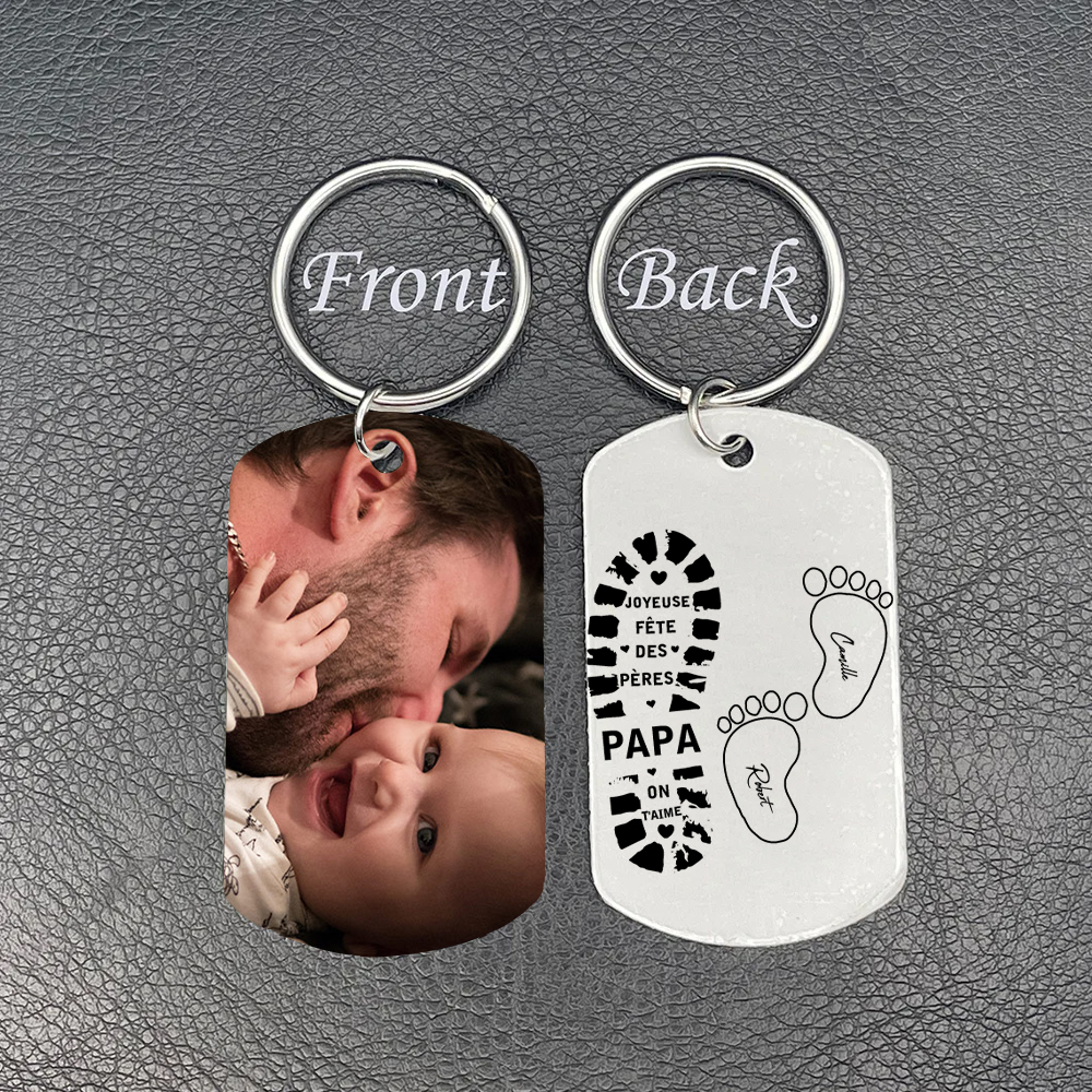 À mon Papa - Porte-Clés empreinte 2 Prénoms Personnalisés avec Photo