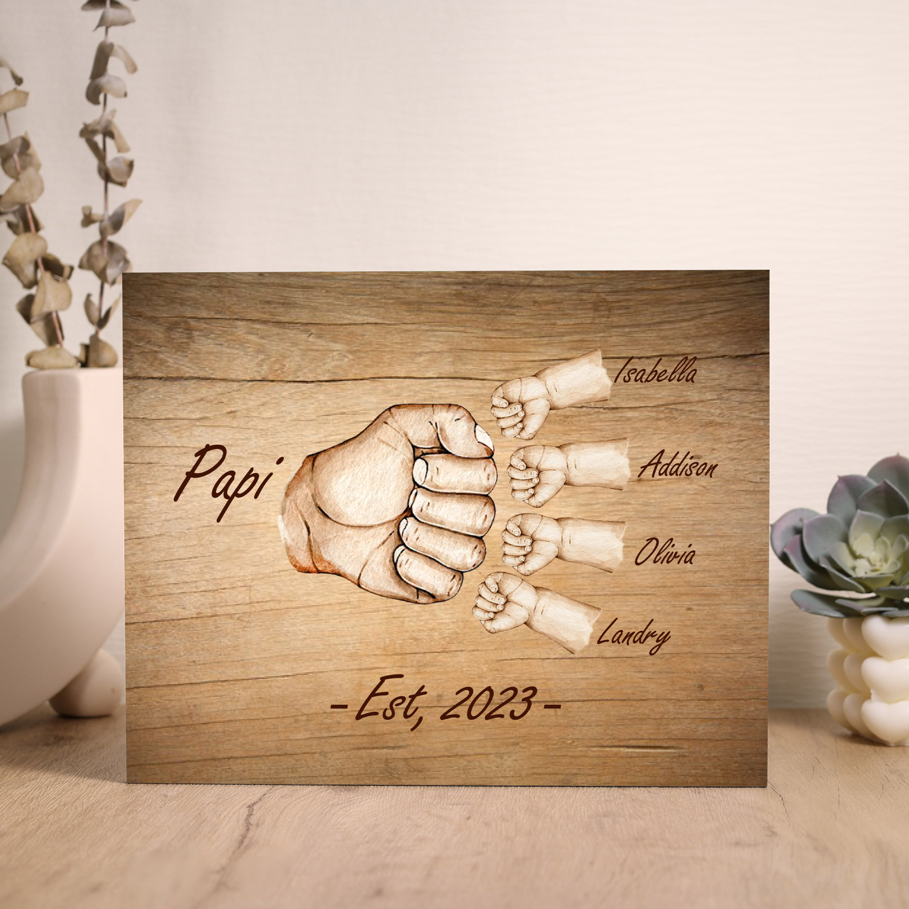 À Mon Papi-Cadre Imprimé en Bois Poings 4 Prénoms Personnalisés avec Date