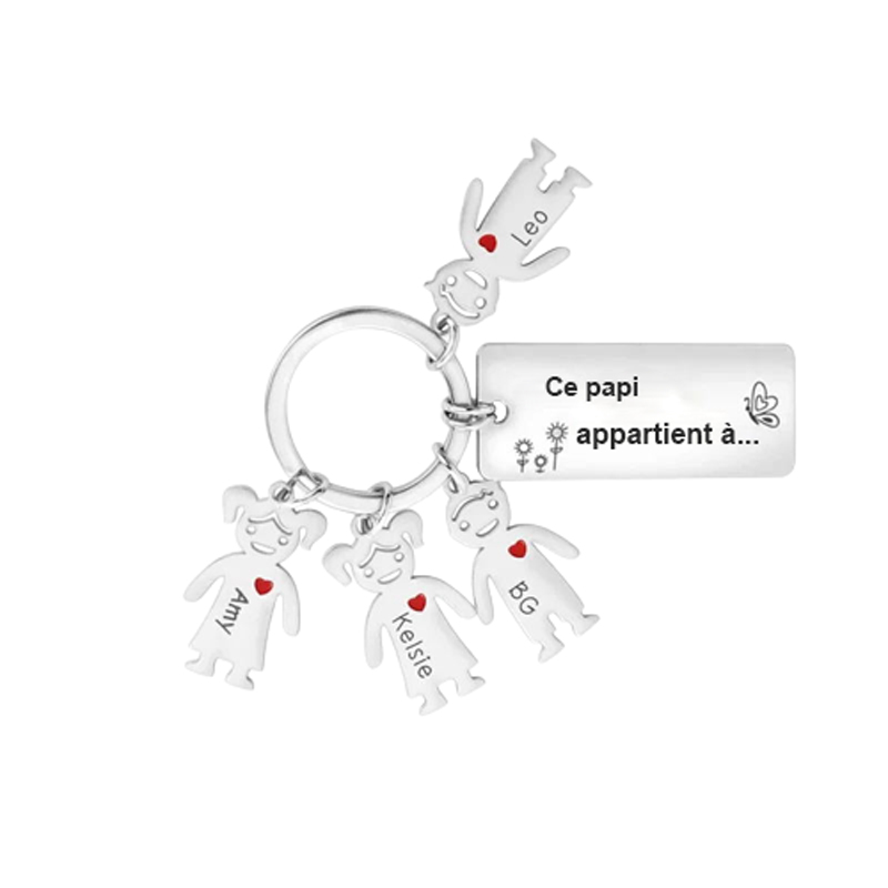 À mon Papi - Porte-Clés 4 Prénoms Personnalisés Avec Breloques 4 Enfants
