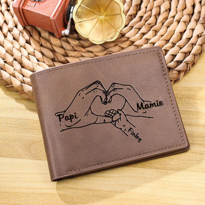 À mon Papi-Portefeuille La Main Dans La Main 3 Prénoms Personnalisés Classique Homme Porte-Monnaie Carte