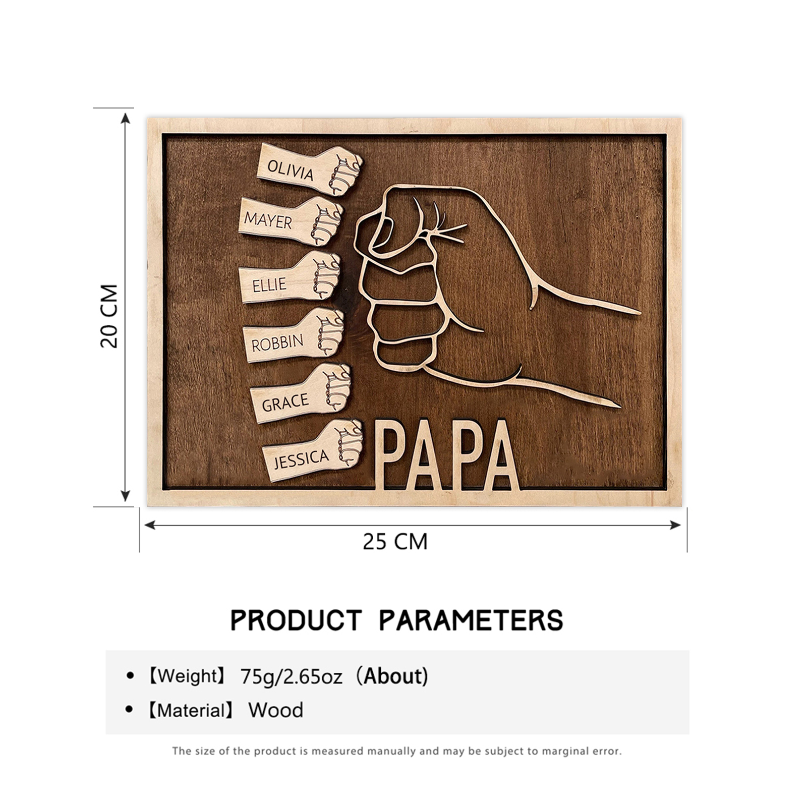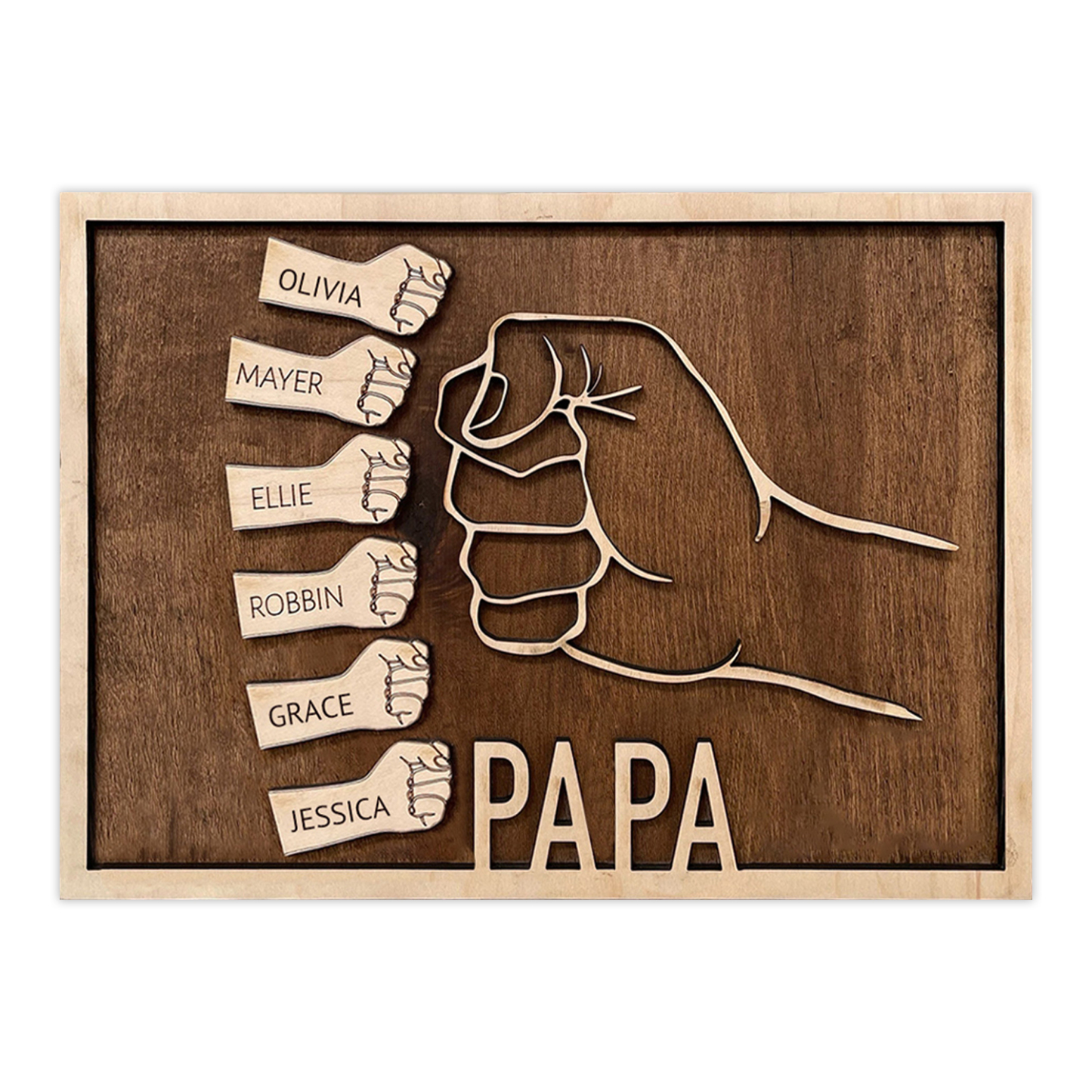 À Papa - Cadre en bois Poings 6 prénoms personnalisée