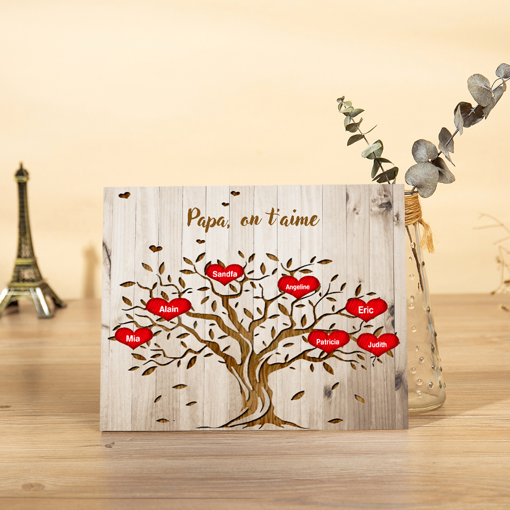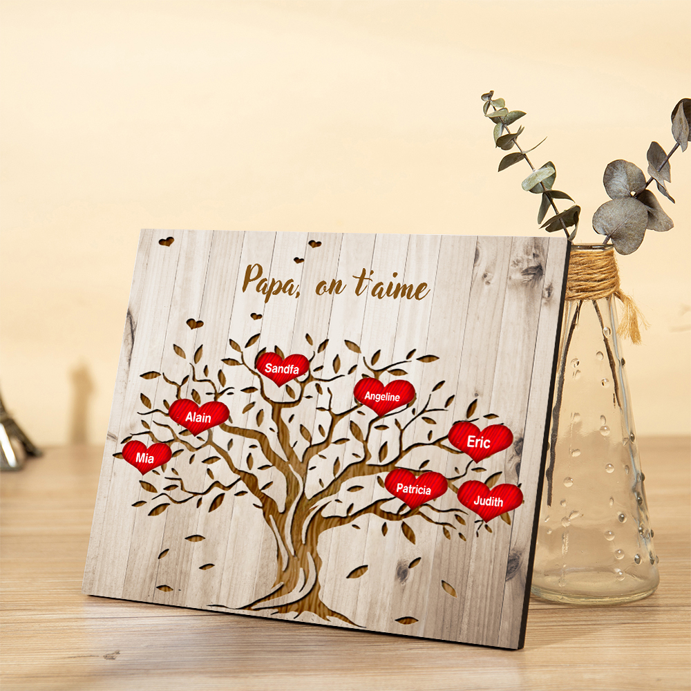 À Papa - Cadre en bois 7 Prénoms personnalisée Arbre de vie Arbre généalogique
