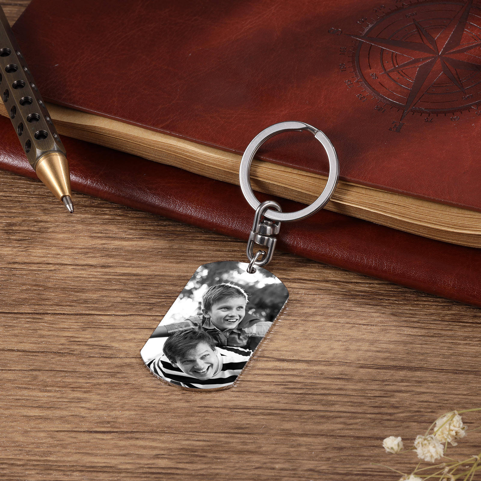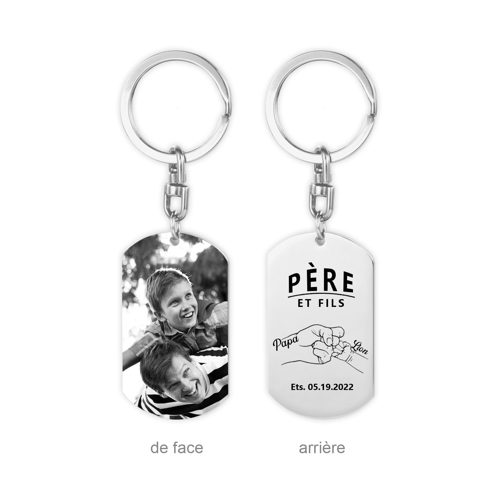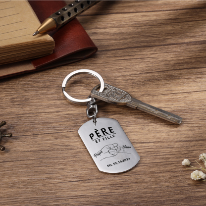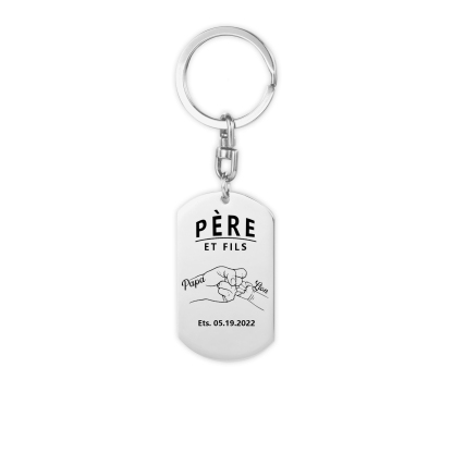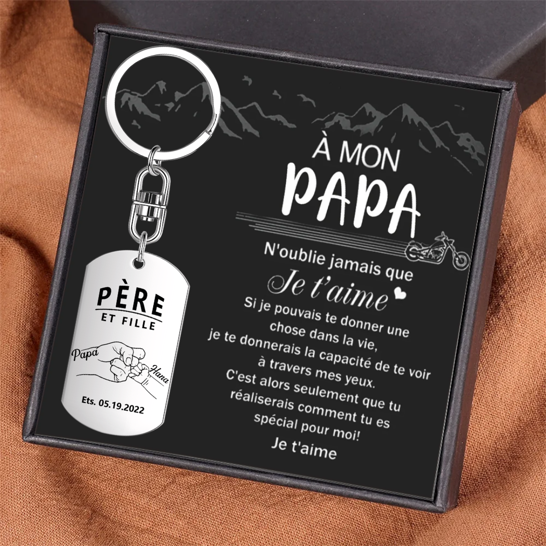 À Papa - Porte-clés gravé Poings 2 Prénom personnalisé avec photo et date