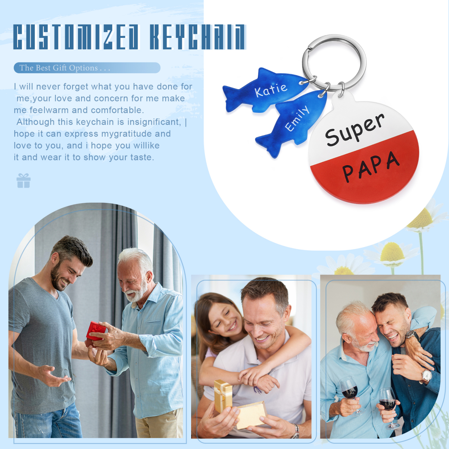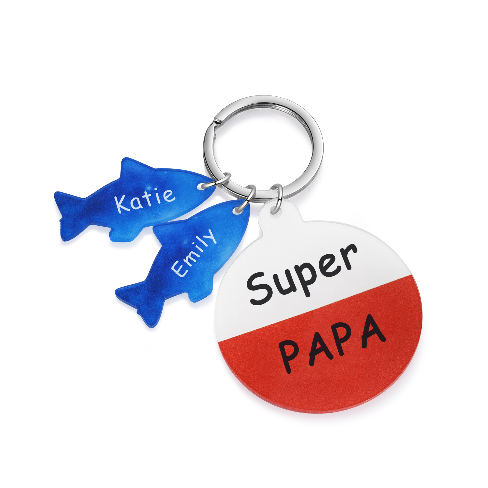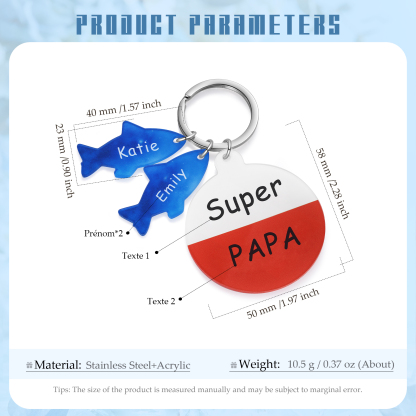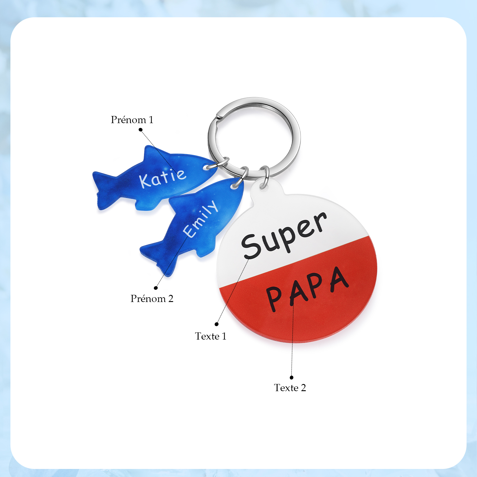 À Papa/Ppai - Porte-Clés Poisson 2 Prénoms et 2 Textes Personnalisés