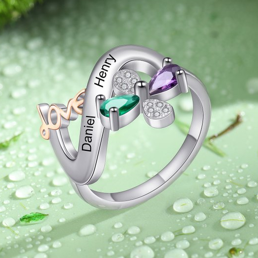 Bague Papillon 2 Prénom Personnalisé avec 2 Pierre de Naissance