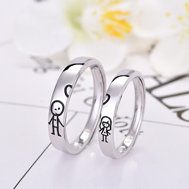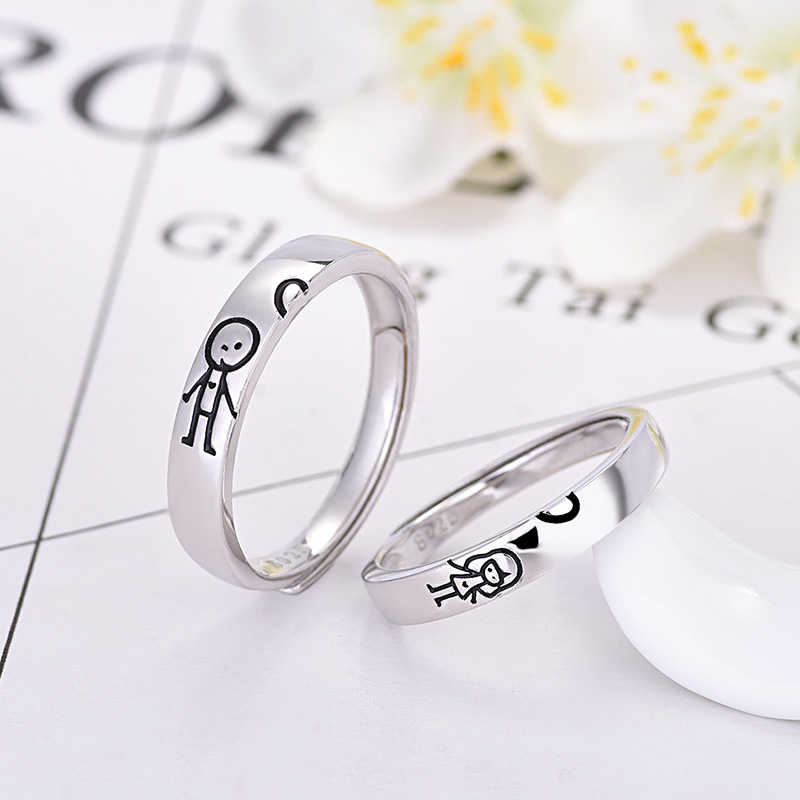 Bague en Argent 925 Réglable Couple 2PCS 2 Lettres Personnalisée Alliance