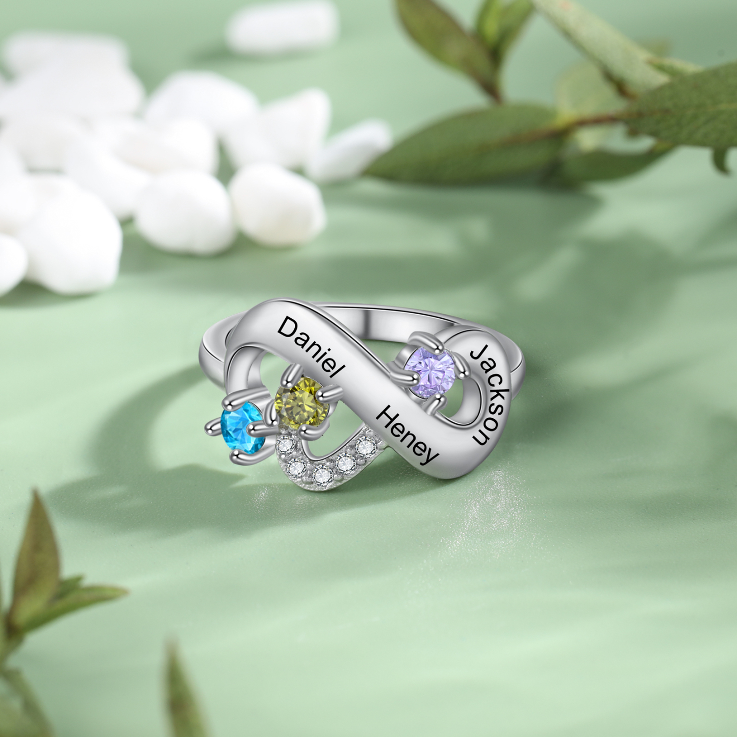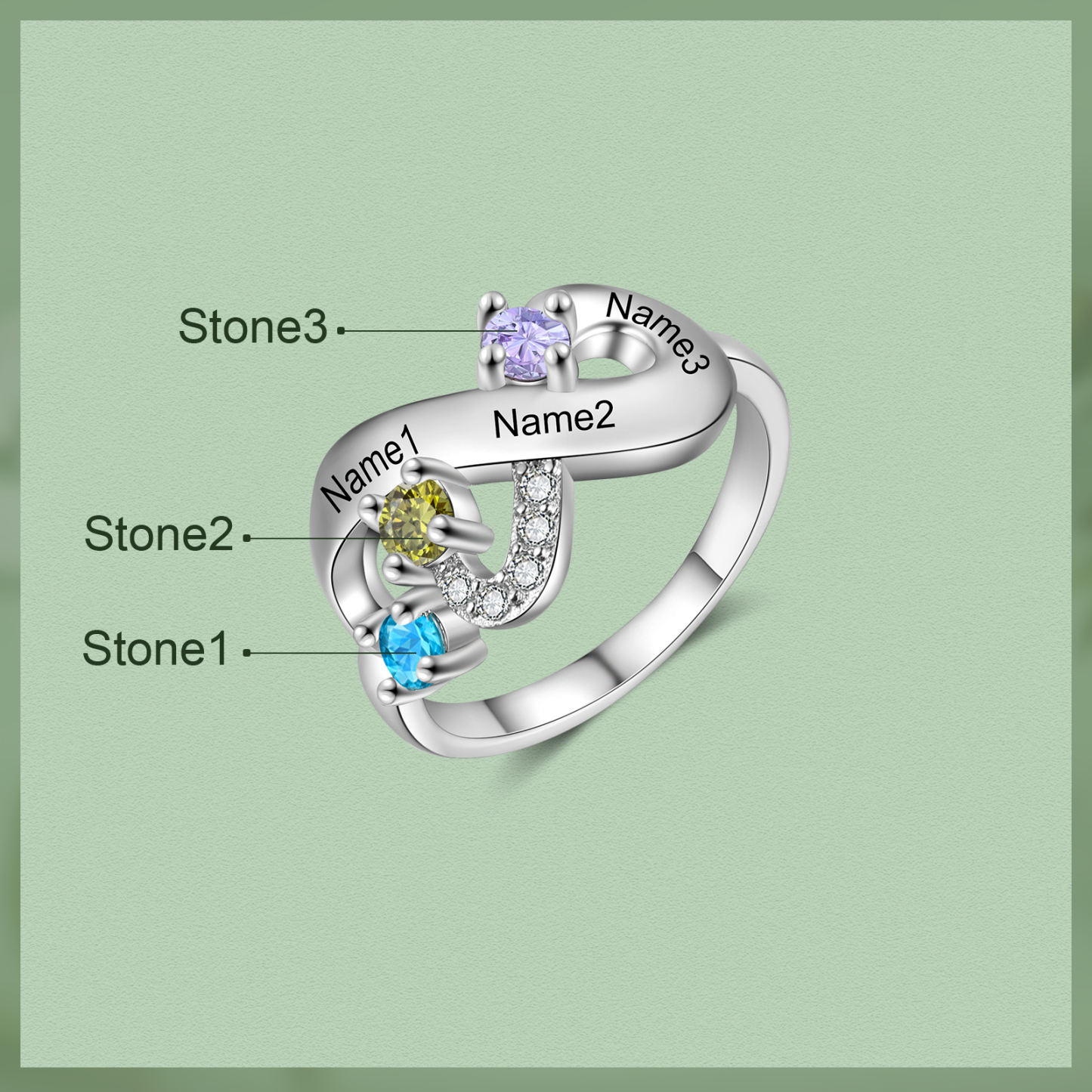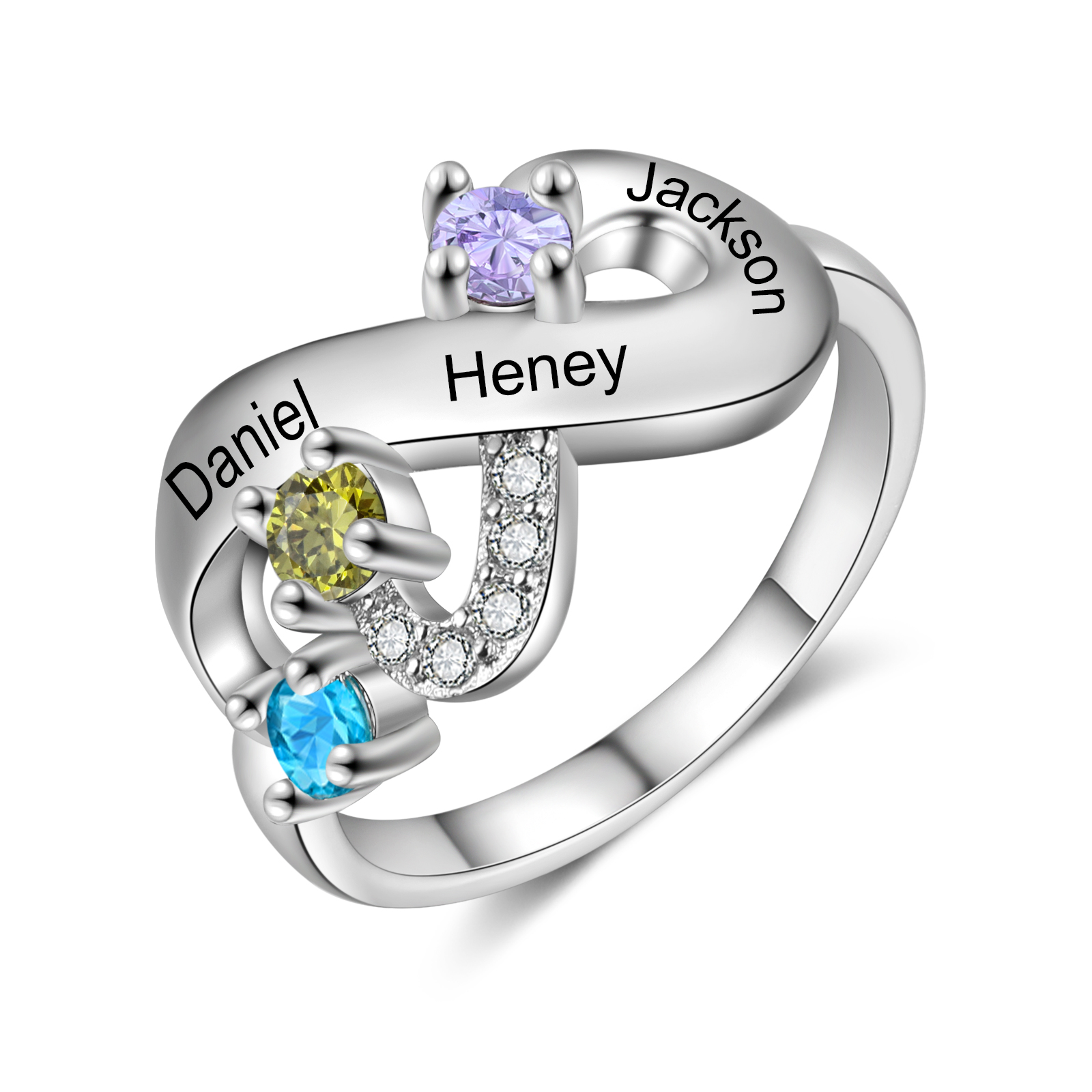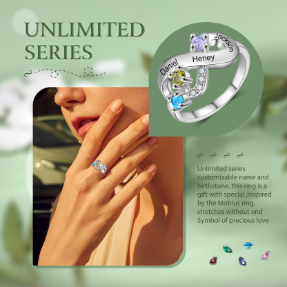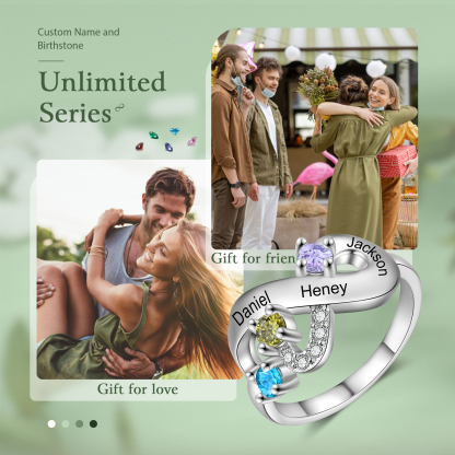 Bague Infini 3 Prénom Personnalisé avec 3 Pierre de Naissance