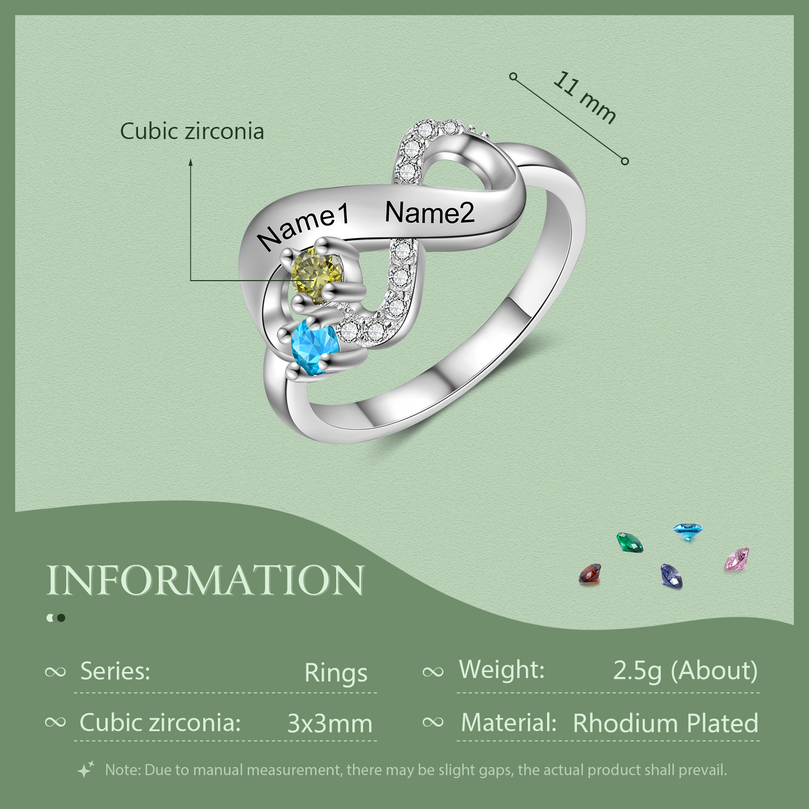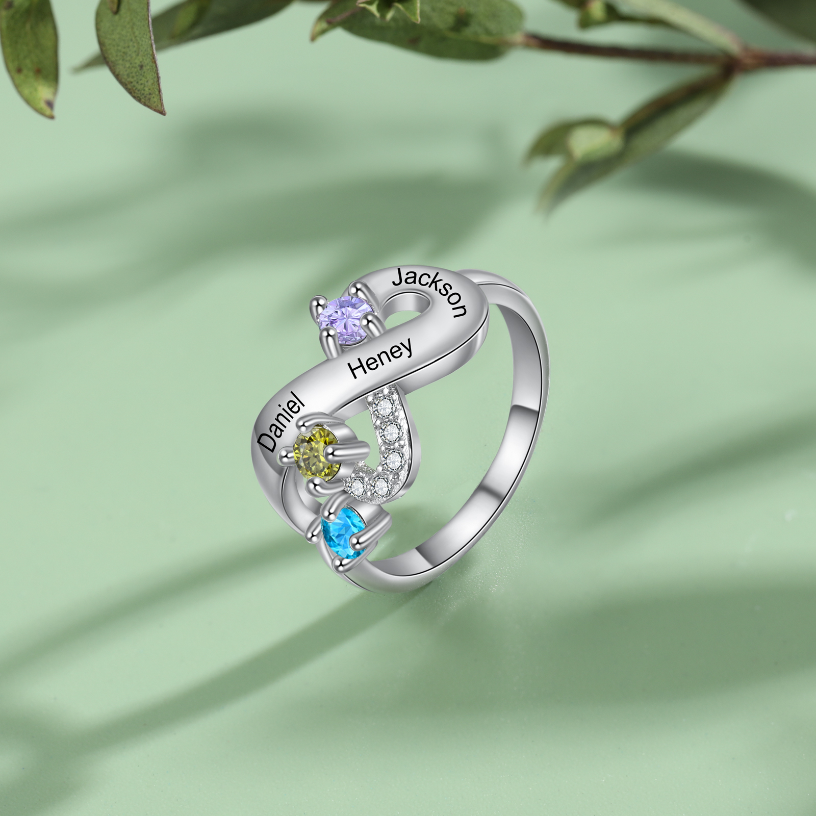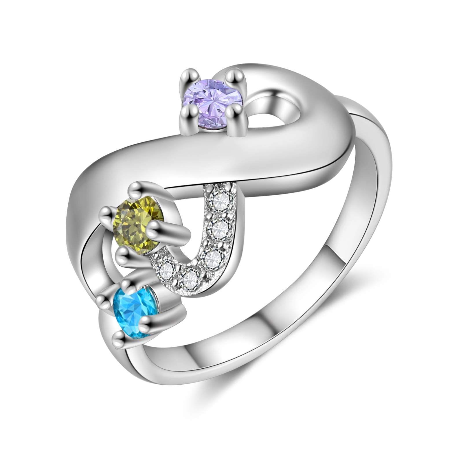 Bague Infini 3 Prénom Personnalisé avec 3 Pierre de Naissance