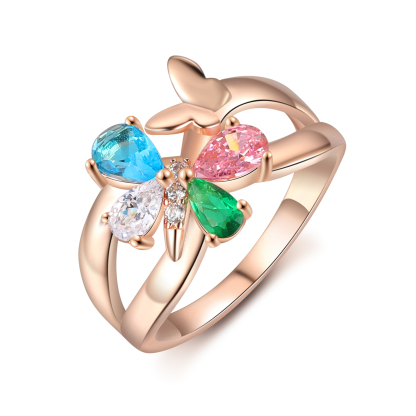 Bague Papillon Personnalisé 3 Prénom avec 3 Pierre de Naissance