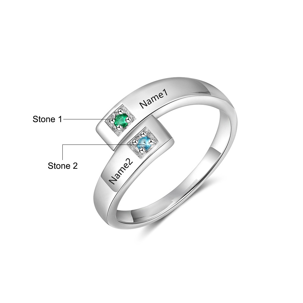 Bague Prénom Personnalisé avec 1 Pierre de Naissance