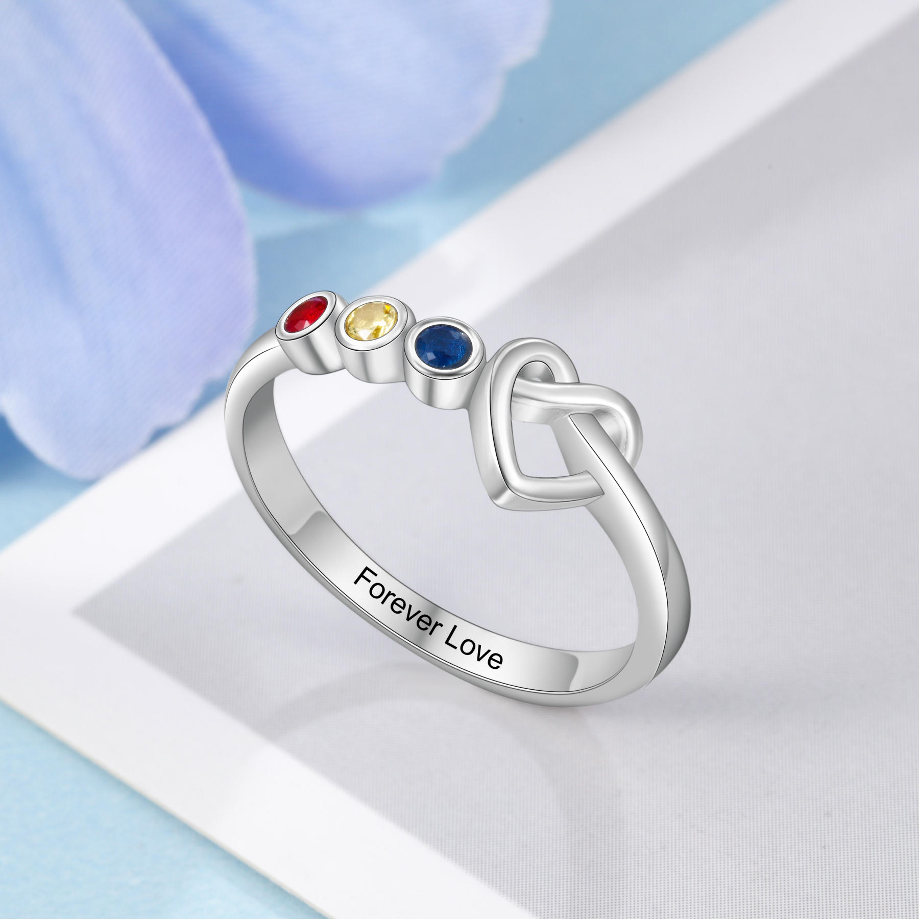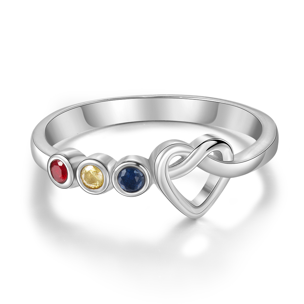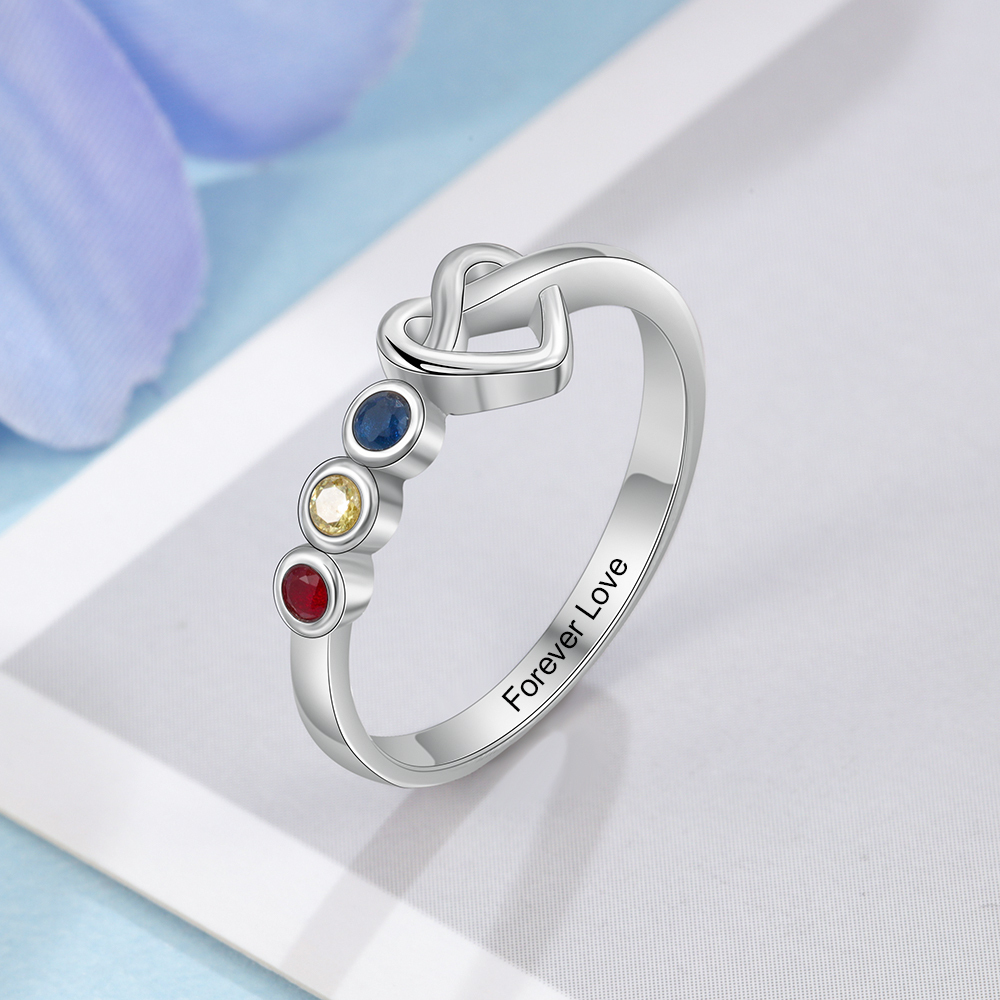 Bague Prénom Personnalisé avec 3 Pierre de Naissance