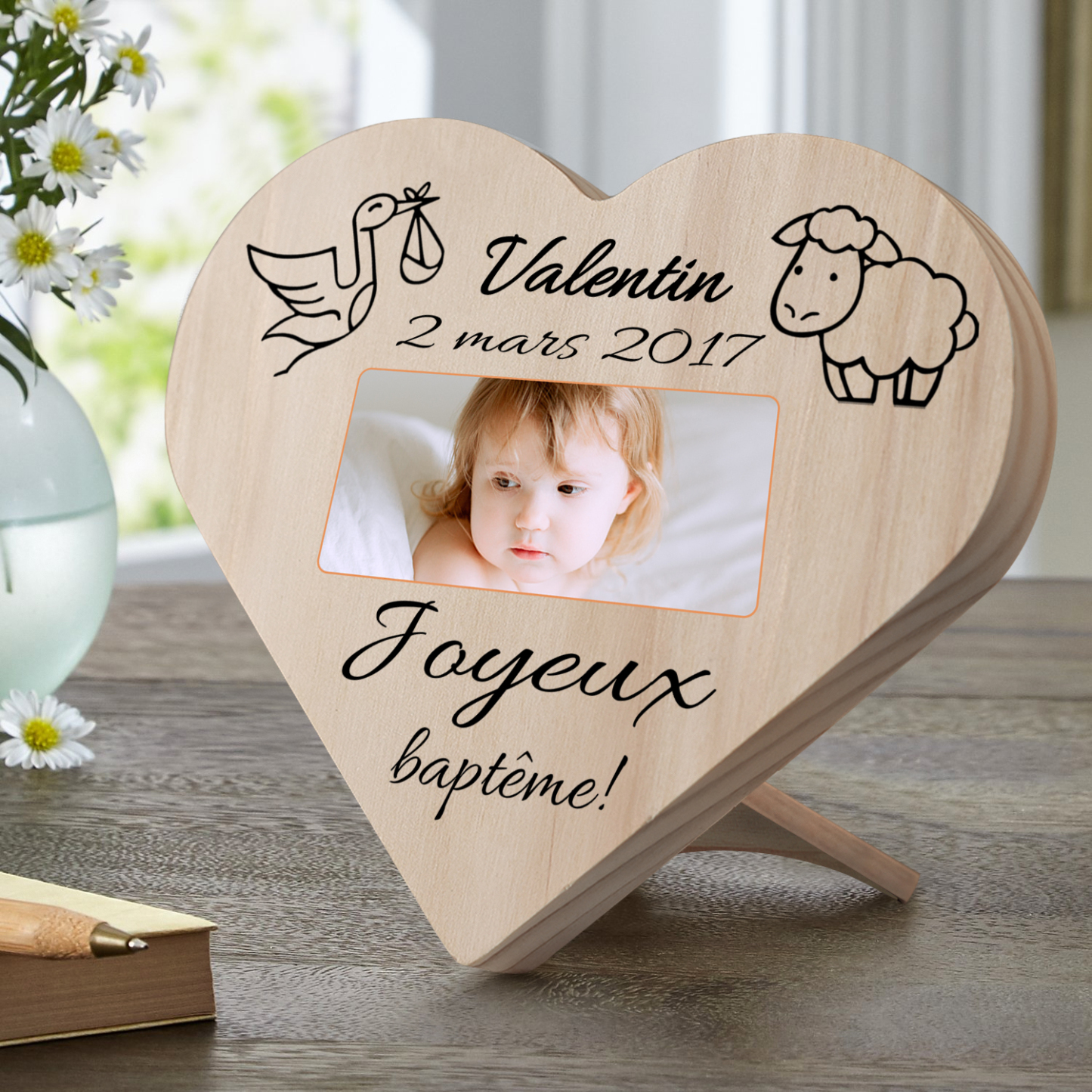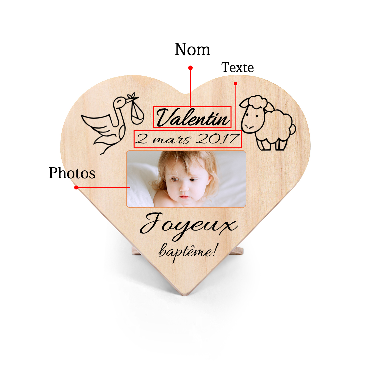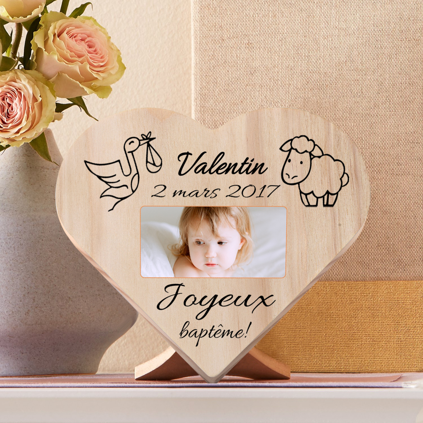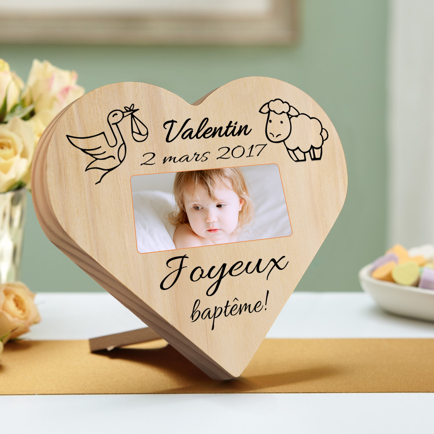 Baptême Décoration En Bois Graver Prénom Personnalisé avec Photo et Texte