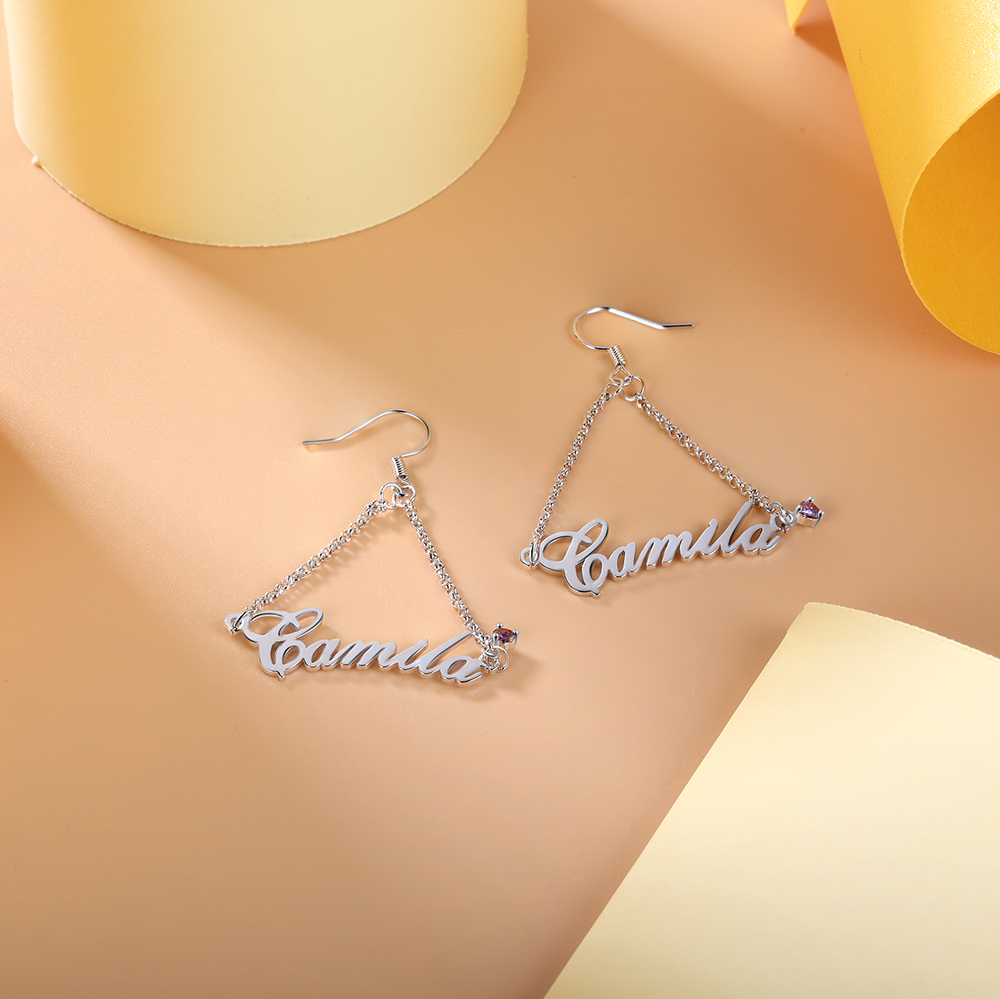 Boucle d'Oreilles Prénom Personnalisés avec pierre naissance