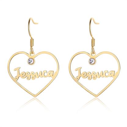 Boucles d'Oreilles Cœur Prénom Personnalisé avec Pierre de Naissance