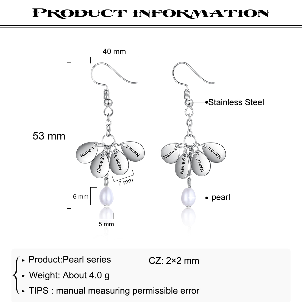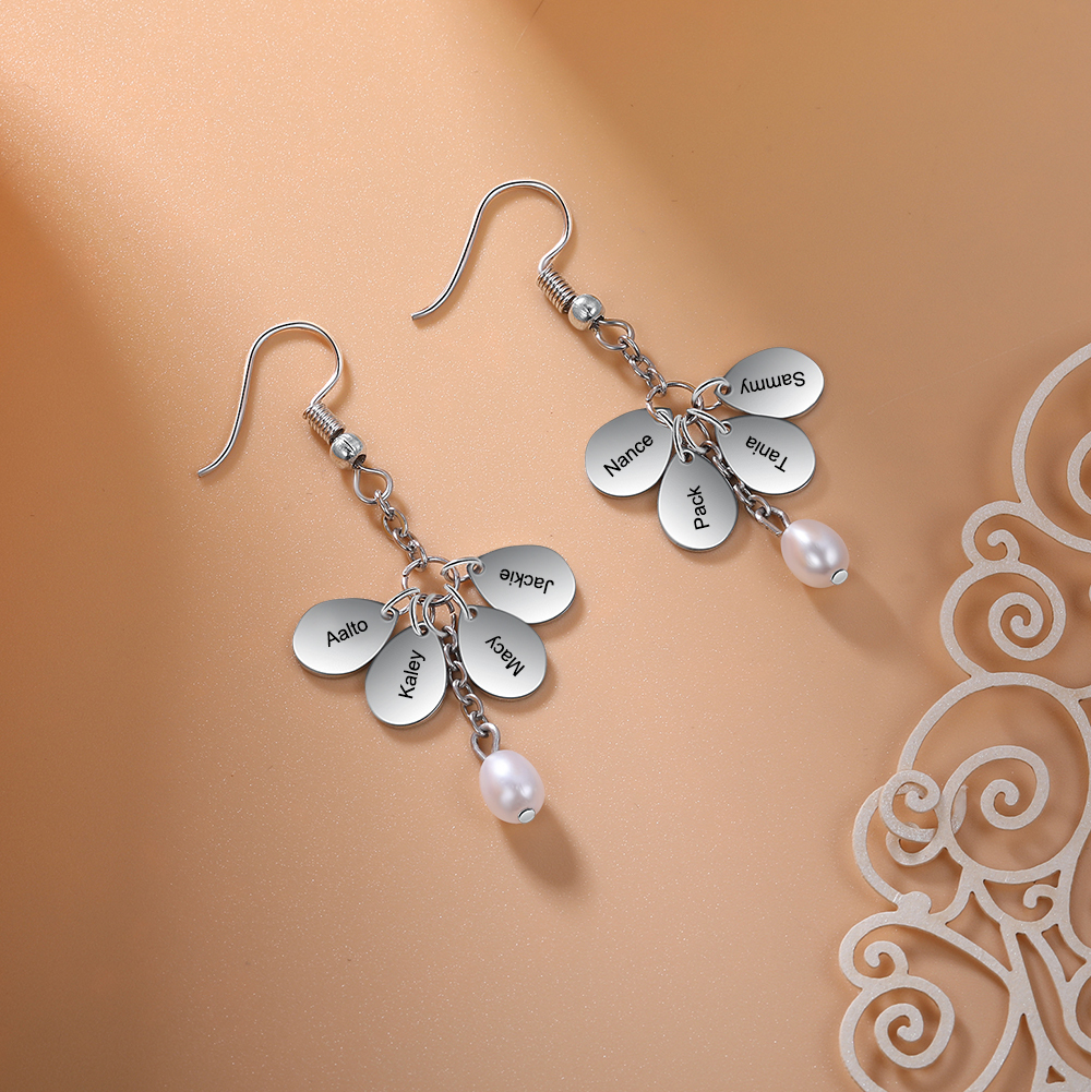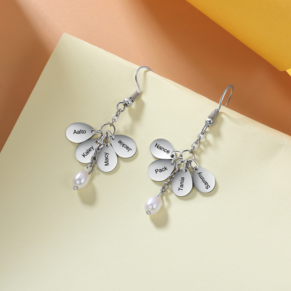 Boucles d'Oreilles Perle 8 Prénoms Personnalisés pour Femme