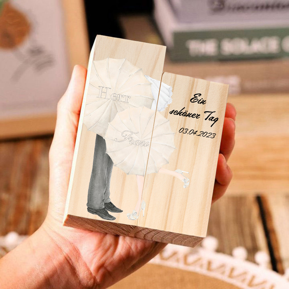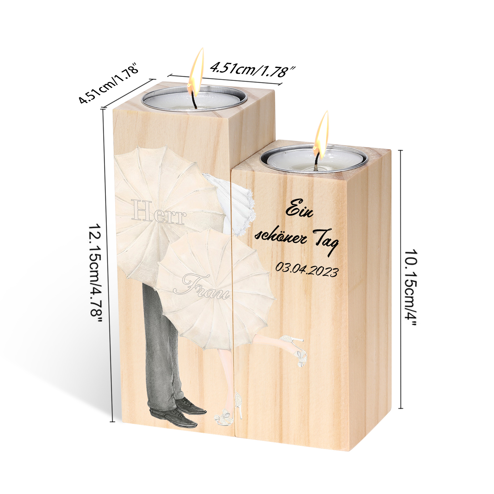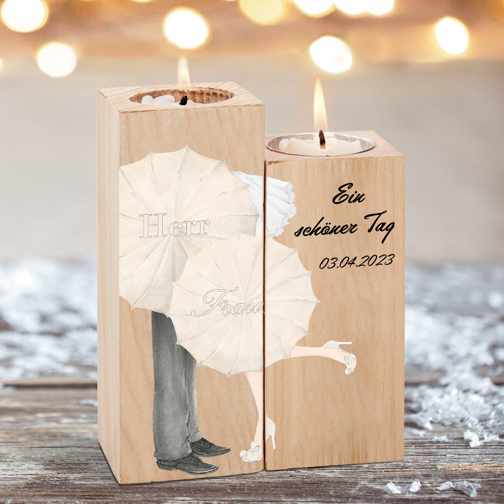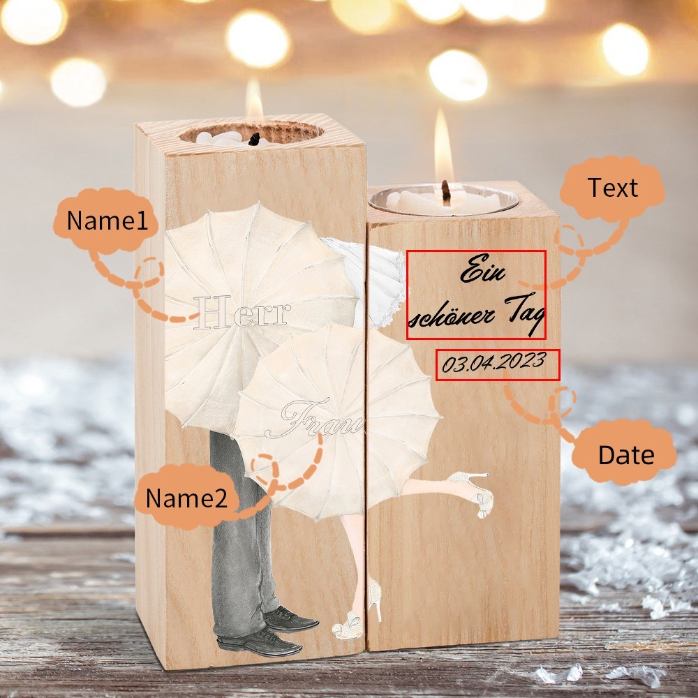Bougeoir en Bois 2 Prénoms Personnalisés avec Date et Texte sans Bougie