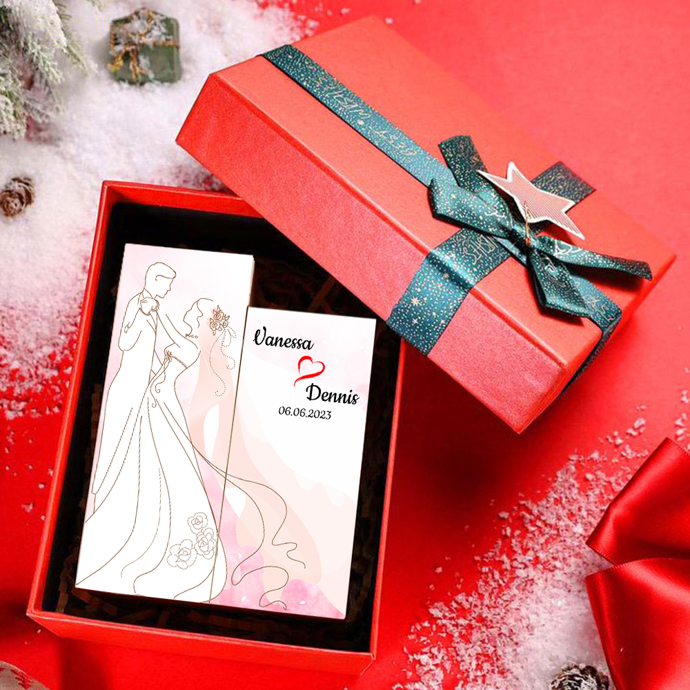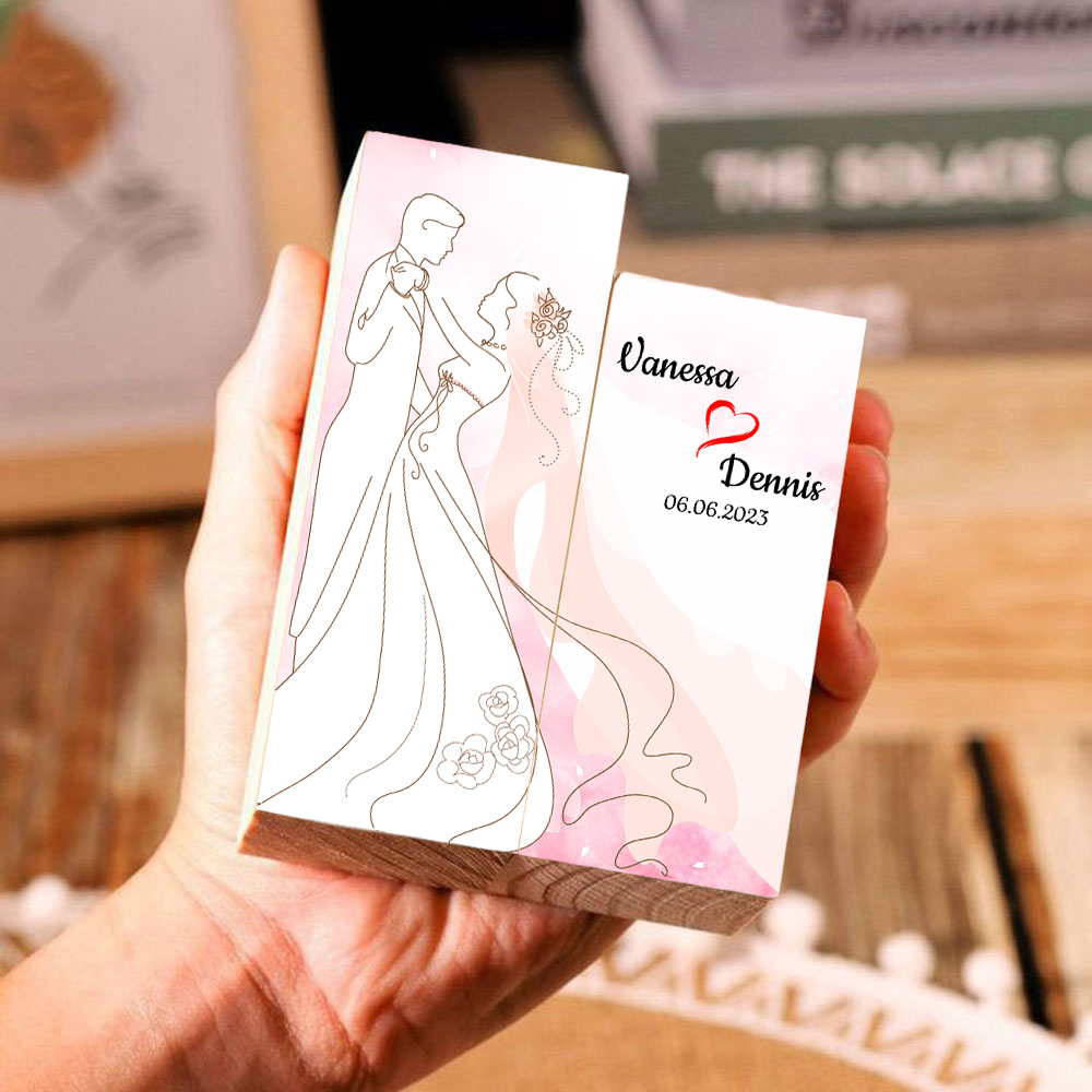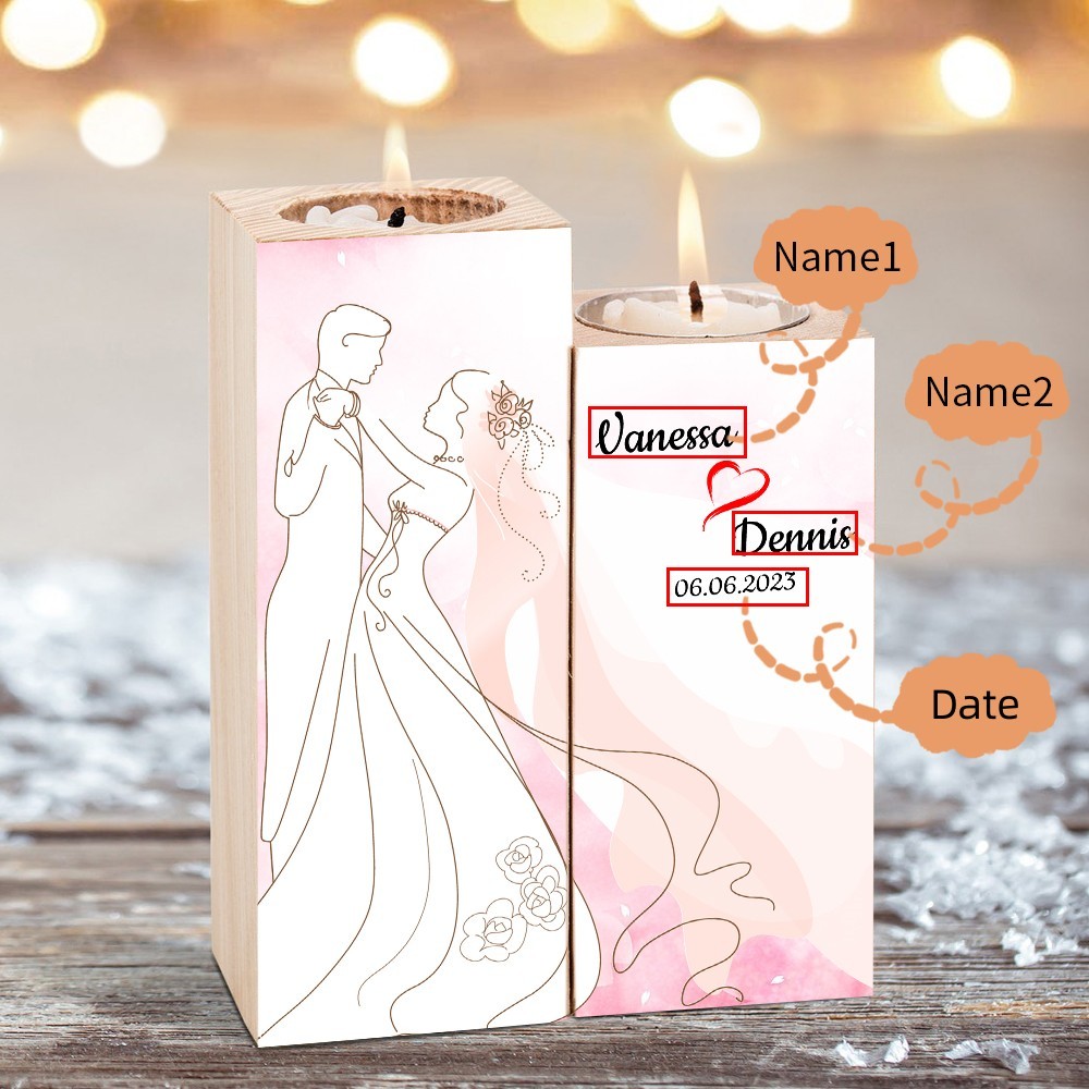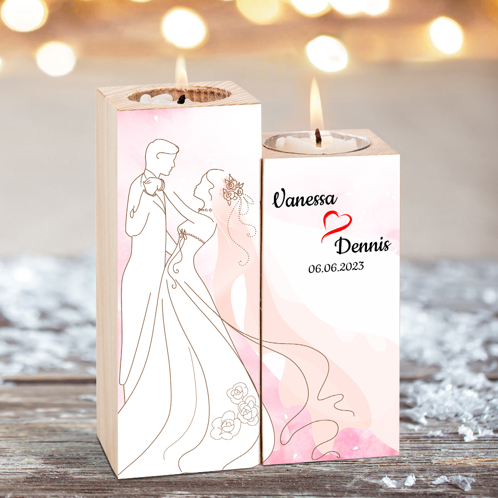 Bougeoir en Bois 2 Prénoms Personnalisés avec Date sans Bougie