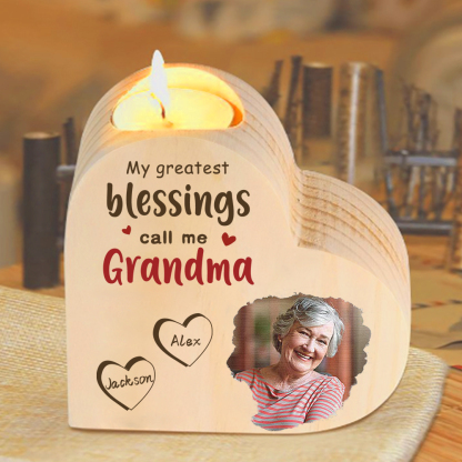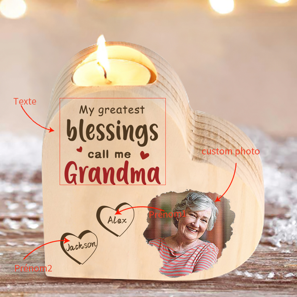 Bougeoir en Bois 2 Prénoms Personnalisés avec Texte et Photo sans bougie