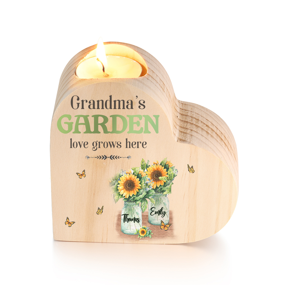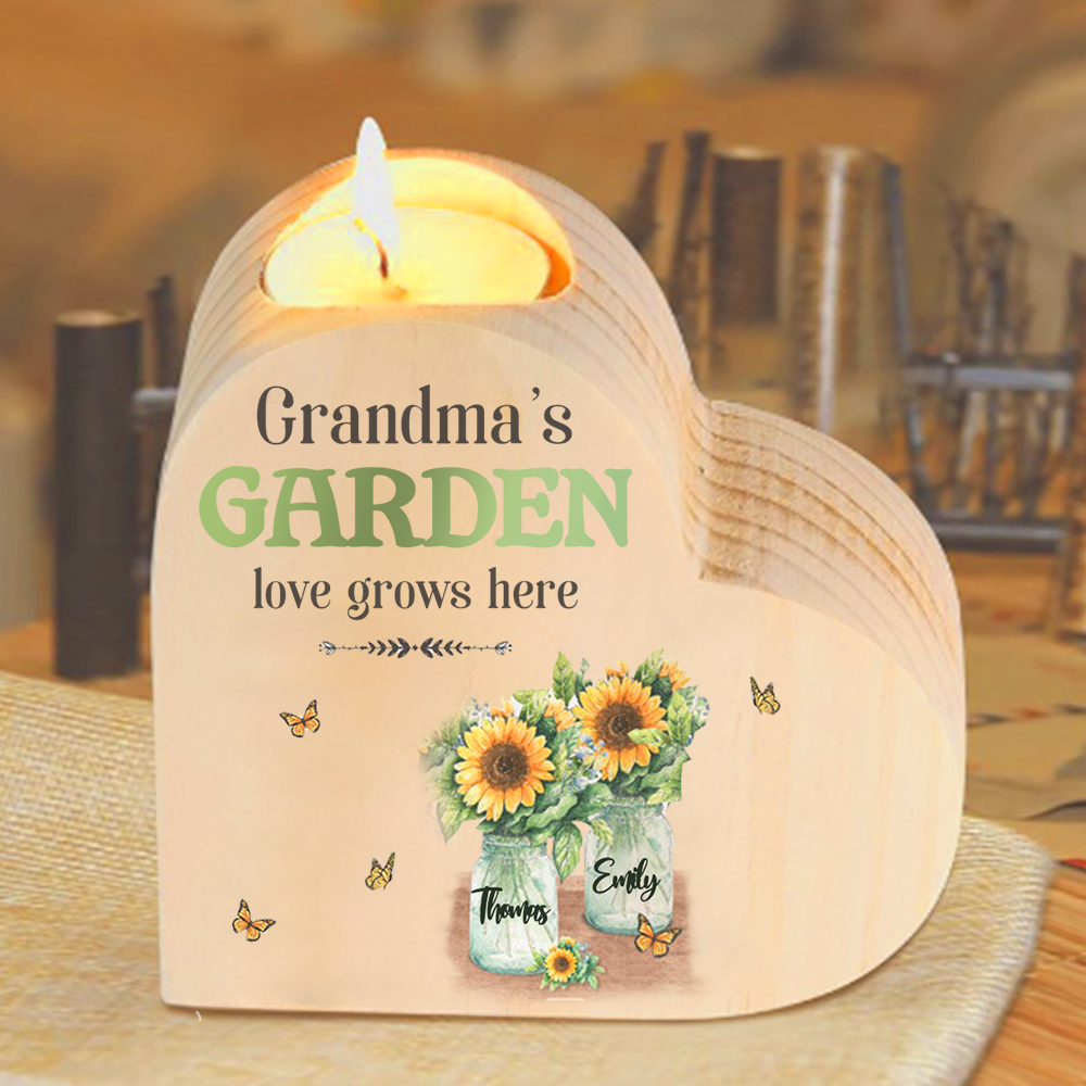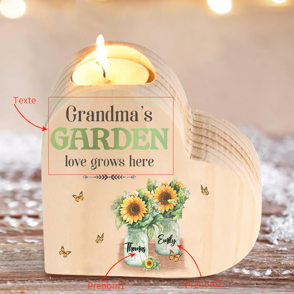 Bougeoir en Bois 2 Prénoms Personnalisés avec Texte sans bougie
