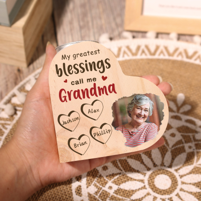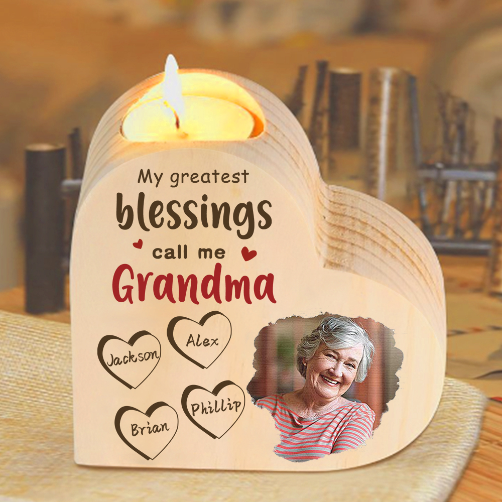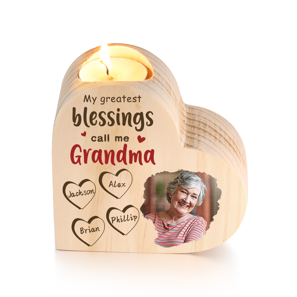 Bougeoir en Bois 4 Prénoms Personnalisés avec Texte et Photo sans bougie