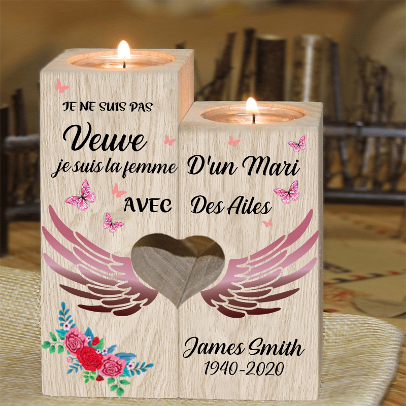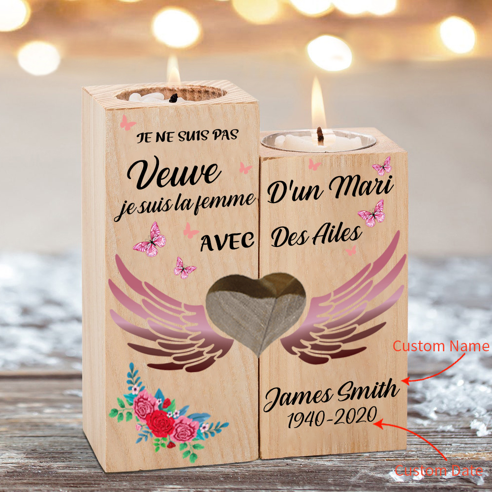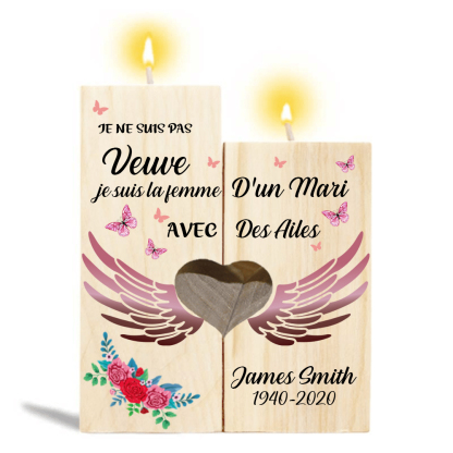 Bougeoir en Bois commémorative sans bougie Prénoms personnalisé avec date