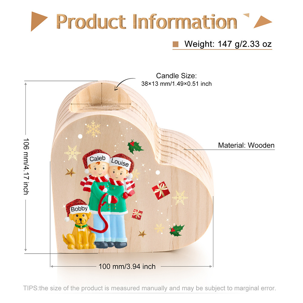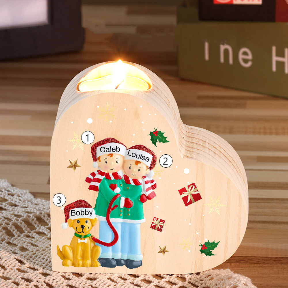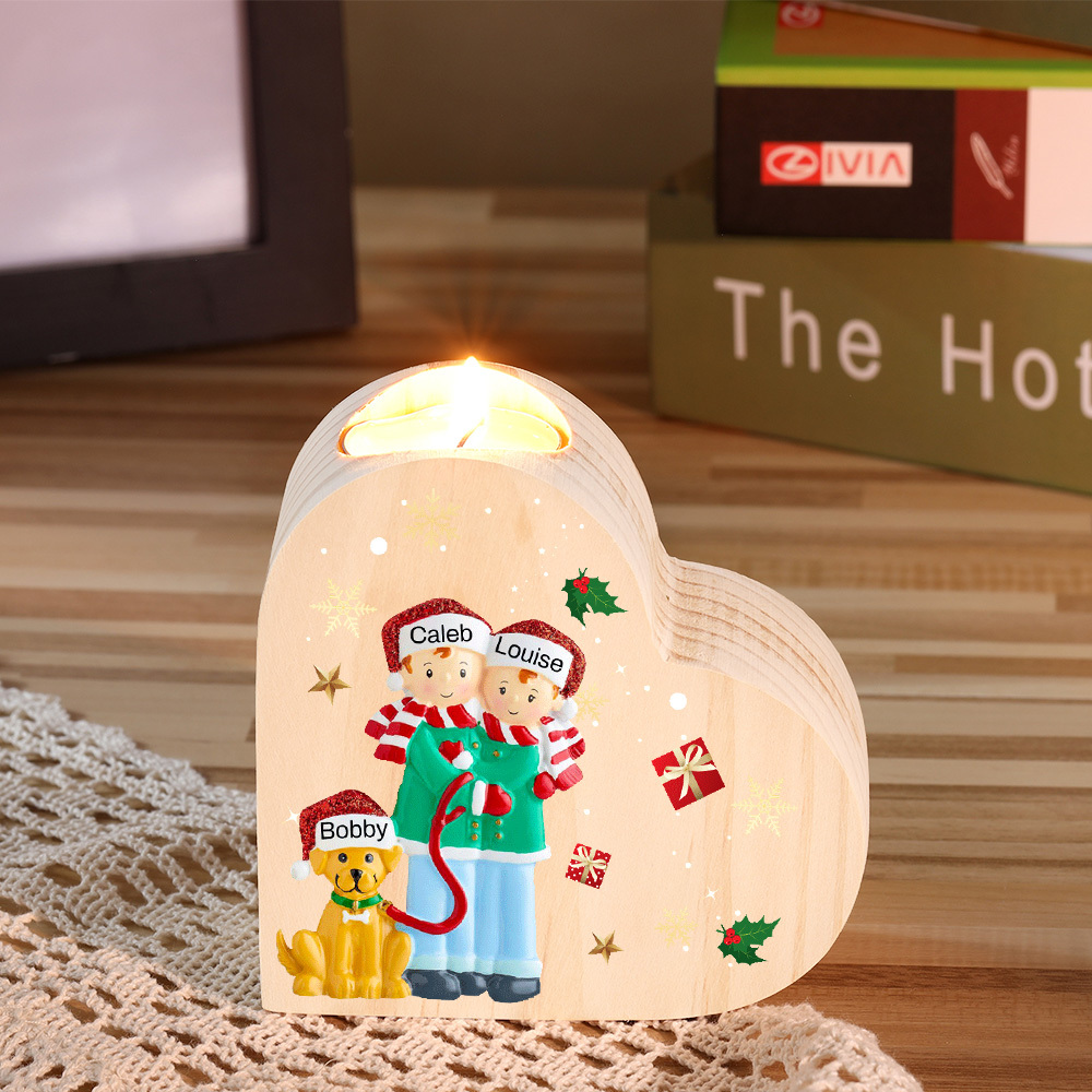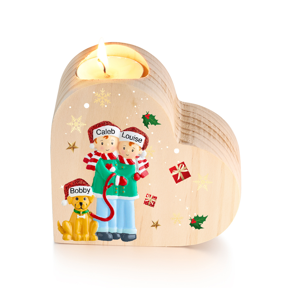 Bougeoir en Bois de Noël Poupée avec chien 3 Prénoms Personnalisés sans bougie