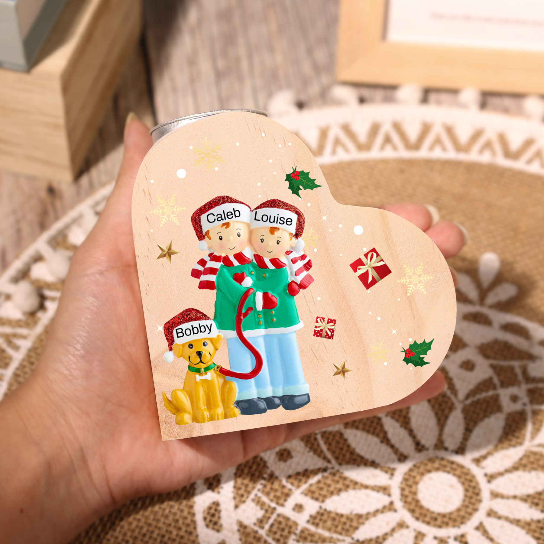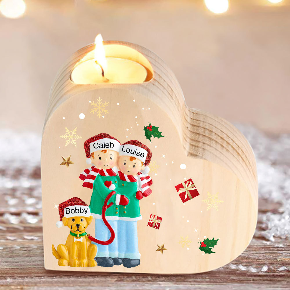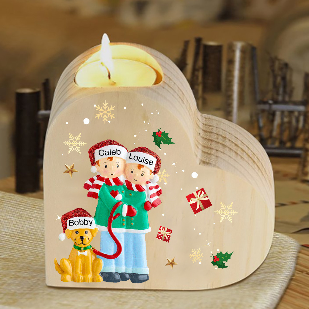 Bougeoir en Bois de Noël Poupée avec chien 3 Prénoms Personnalisés sans bougie