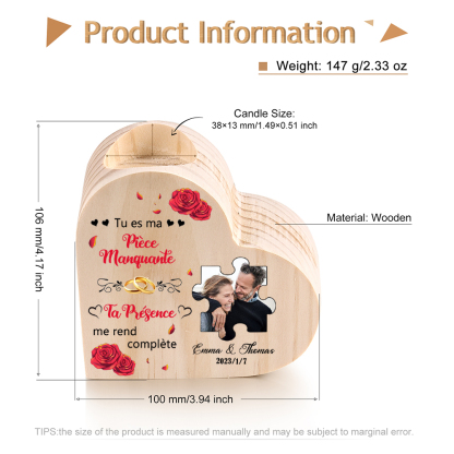 Bougeoir en Bois de Saint-Valentin texte Personnalisé avec date et photo sans bougie