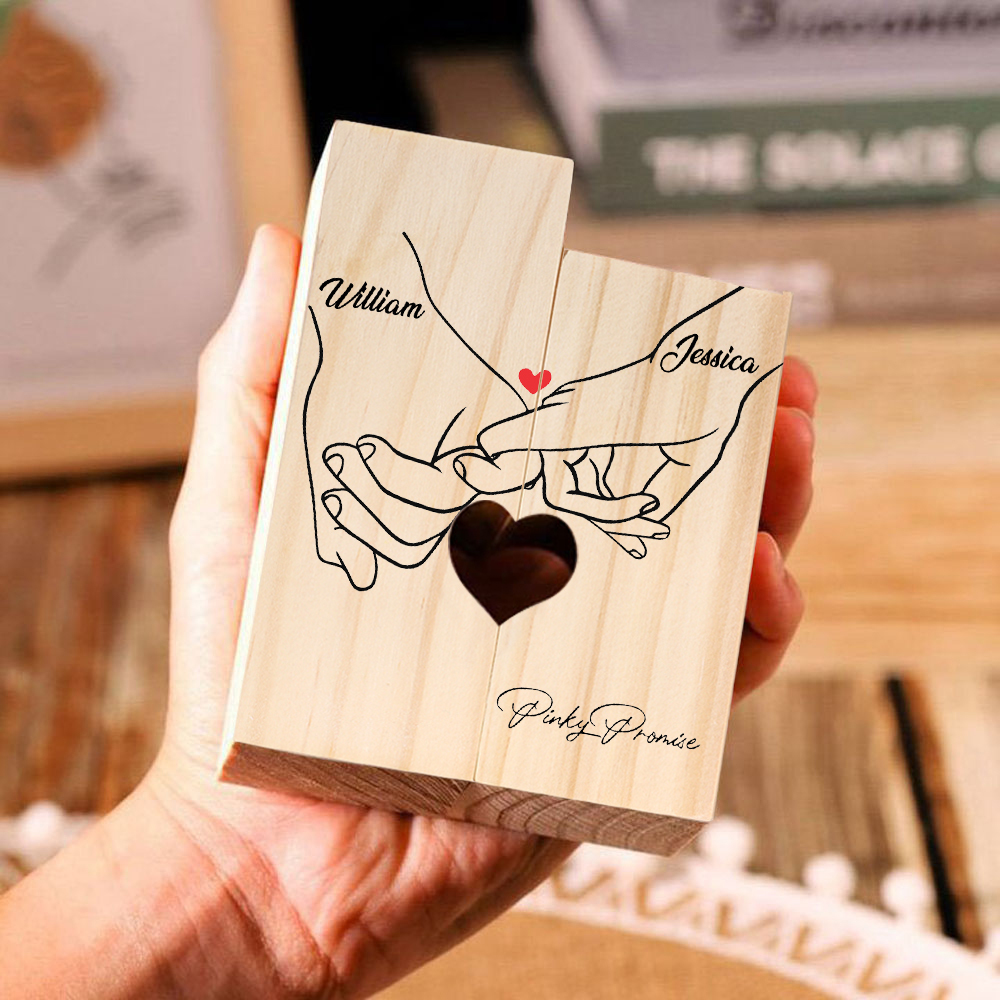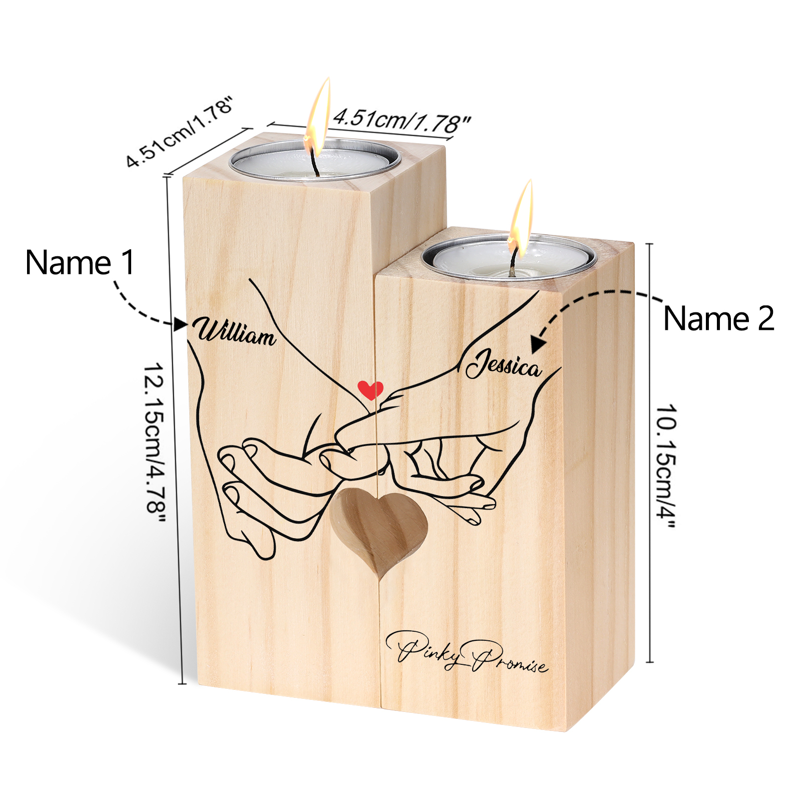 Bougeoir en Bois la main dans la main 2 Prénoms Personnalisé sans bougie