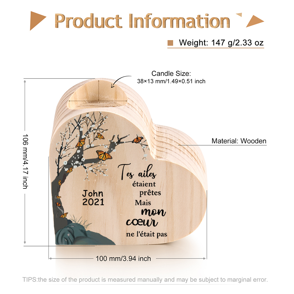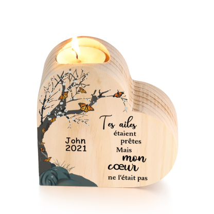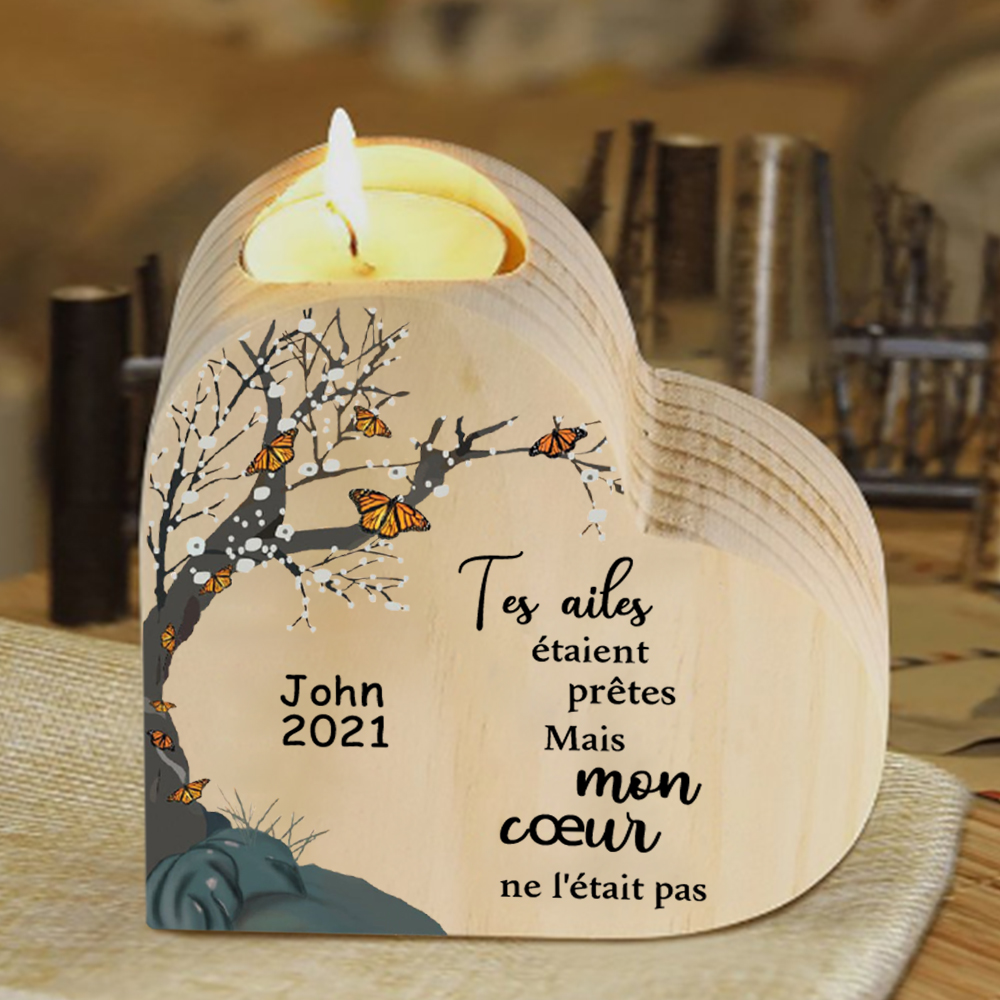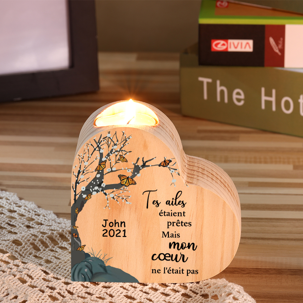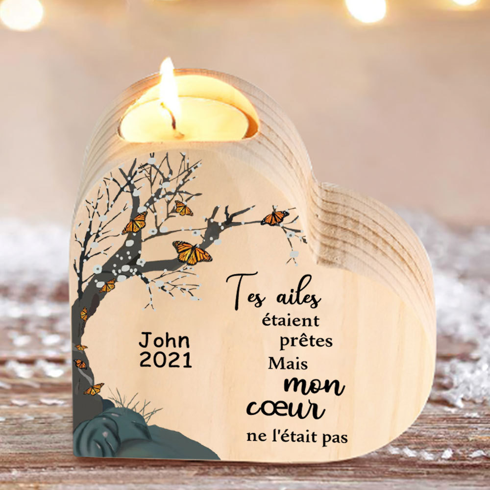 Bougeoir en Bois Papillon en forme de coeur Prénom Personnalisé avec années sans bougie