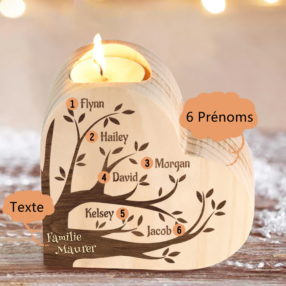 Bougeoir en Bois sans bougie Arbre de vie Arbre généalogique 6 Prénoms Personnalisé avec texte