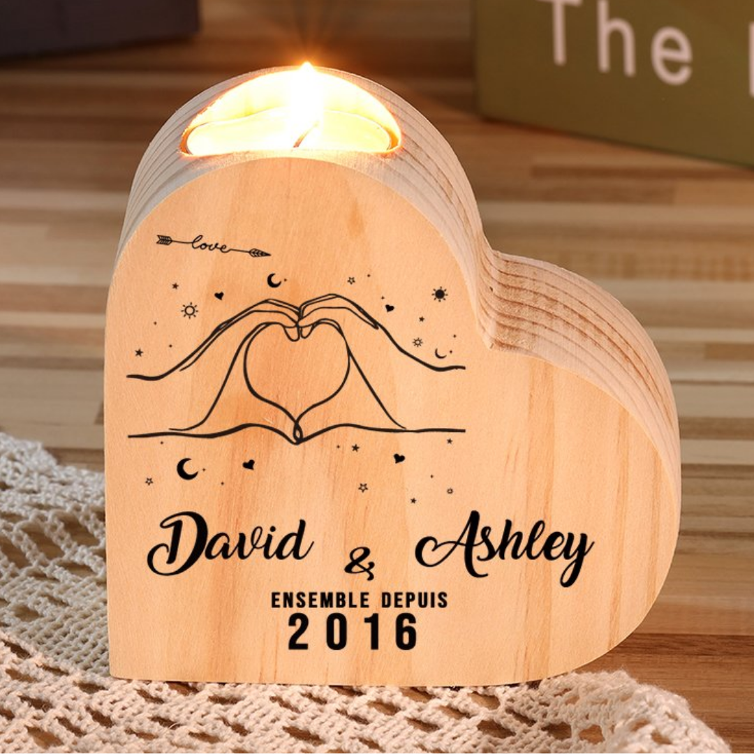 Bougeoir personnalisé en forme de coeur en Bois geste du coeur sans bougie