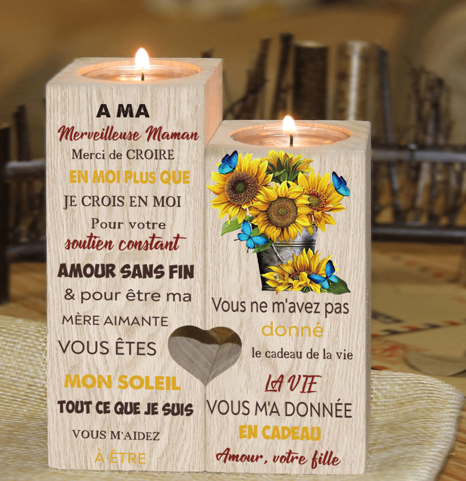 Bougeoirs en Bois 2PCS sans bougie A Ma chère Maman