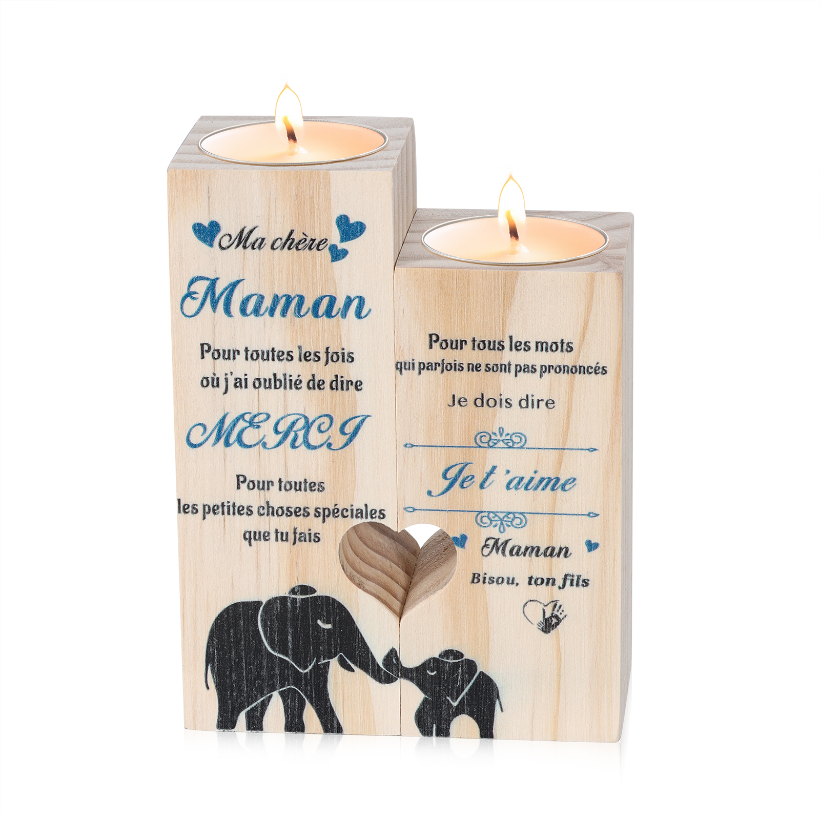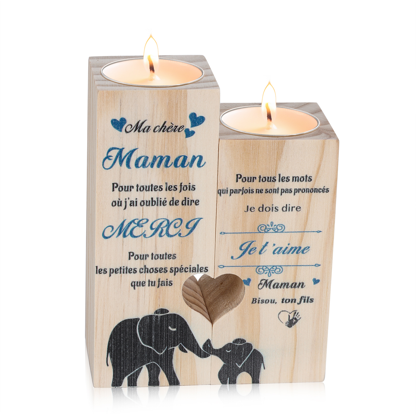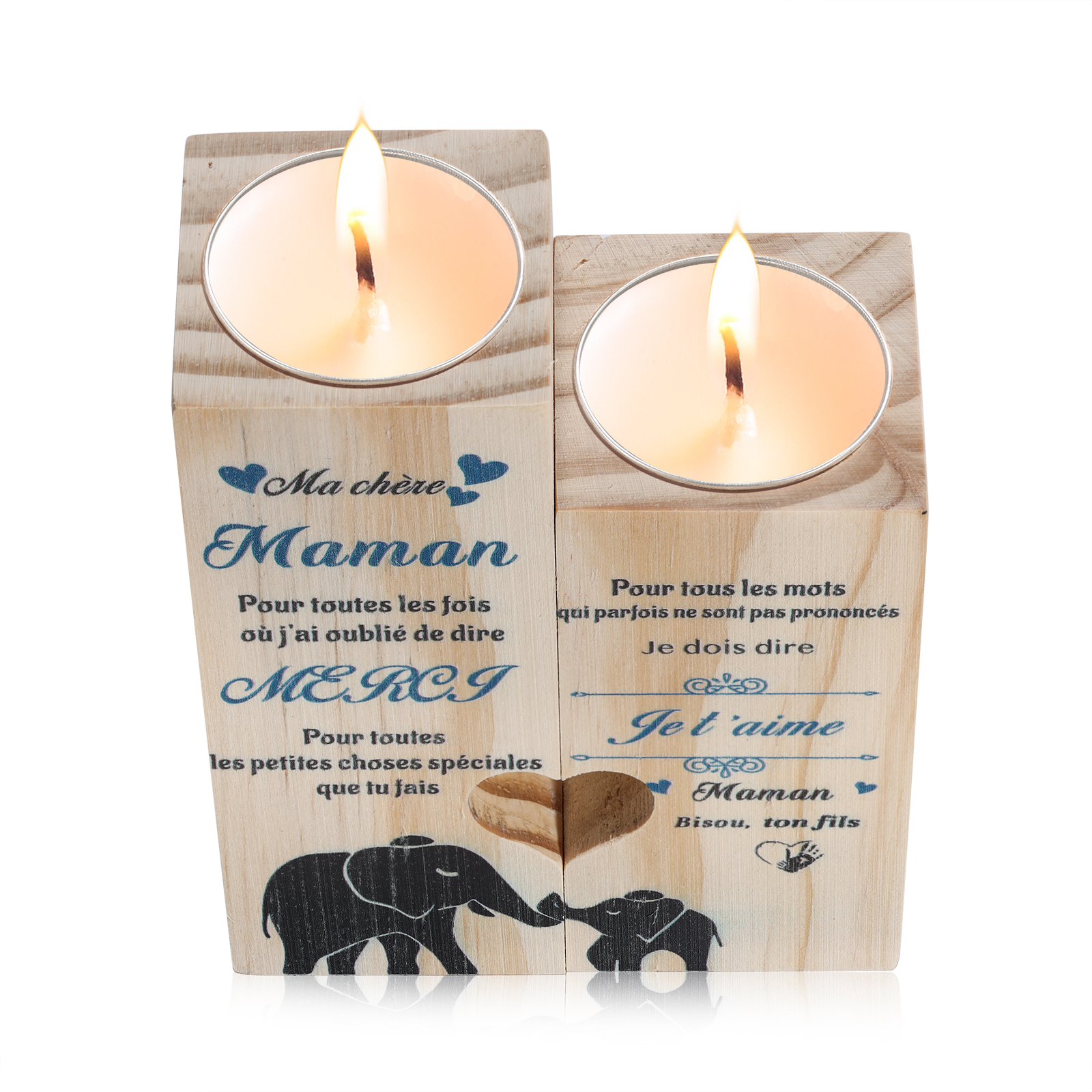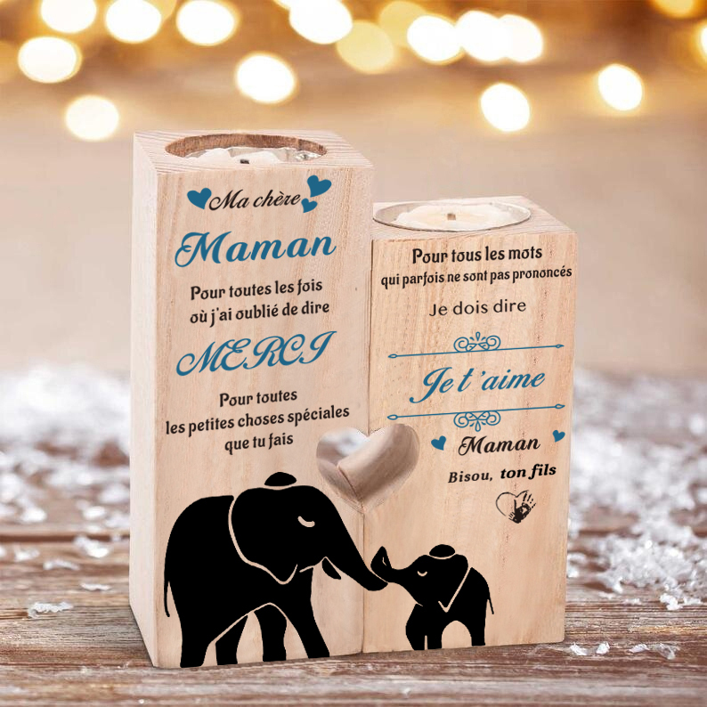Bougeoirs en Bois 2PCS sans bougie Fils A Ma chère Maman